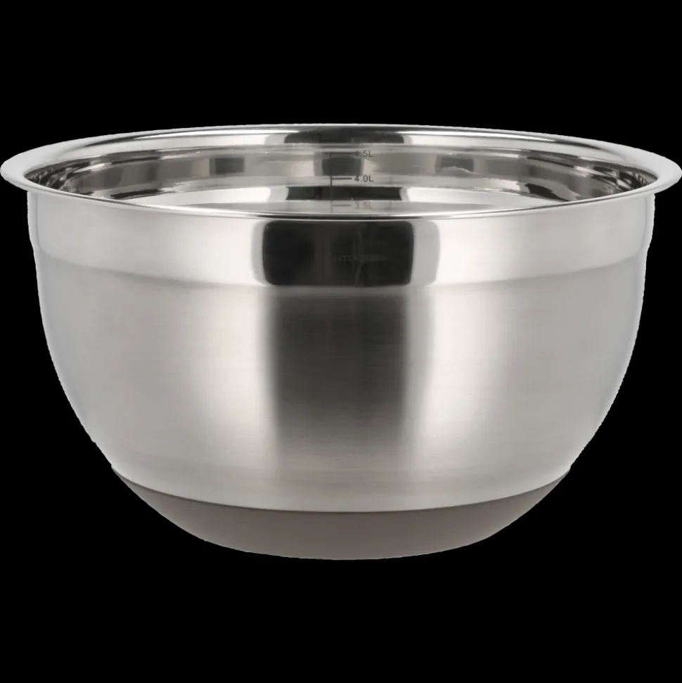 Denne røreskål i rustfrit stål har en skridsikker silikonebund, som sørger for en god stabilitet, mens ingredienserne bliver blandet sammen. Skålen rummer 5 liter og er perfekt til de større opgaver, du står overfor i køkkenet. Og så kan den rengøres i opvaskemaskinen, hvilket betyder mindre tid på opvasken og mere tid til at nyde det, du har lavet. Vaskes i opvaskemaskine før første brug.