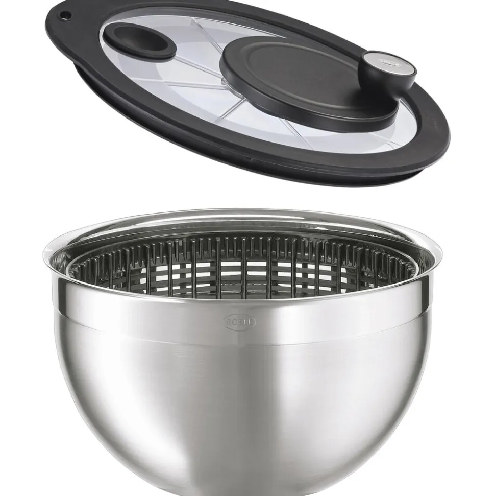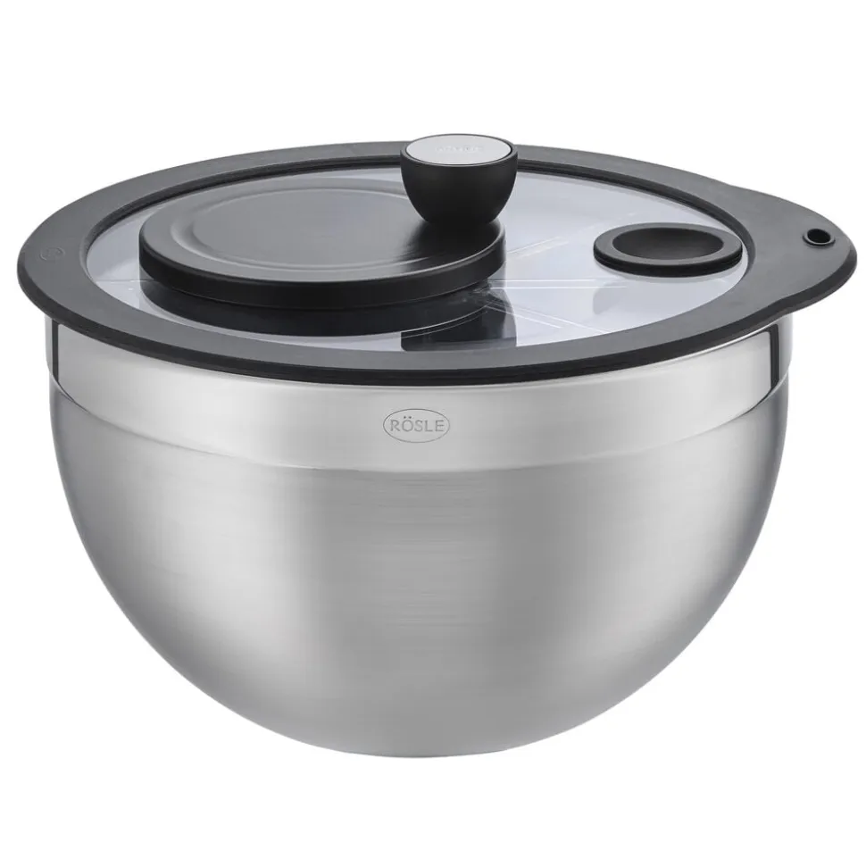 RÖSLE salatslynge består af en skål med glaslåg, en kurveindsats og en drejemekanisme, der garanterer det perfekte resultat hver gang. På praktisk vis kan skålen holdes med én hånd og betjenes uden større besvær. Du kan naurligvis også bruge skålen alene som blandeskål eller til at servere salater i. Tåler opvaskemaskine.