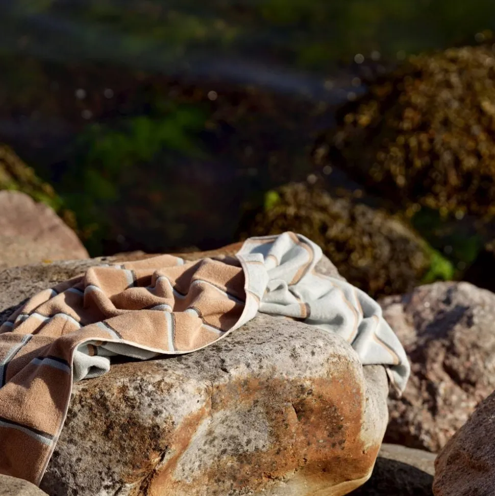Sauna er navnet – og striberne taler for sig selv. Serien er inspireret af de stramme linjer i en klassisk træbeklædt sauna, hvor designet leger elegant med perspektiv og farvebalance. Hver side af håndklædet fremhæver sin egen dominerende farve – en fin detalje, der giver dig to forskellige udtryk i ét og samme håndklæde
