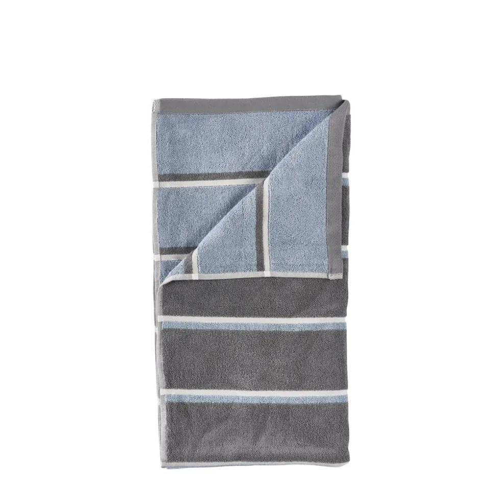 De retroinspirerede striber tilføjer et grafisk, urbant touch, og med en blød, kraftig kvalitet i garnfarvet 600 grams bomuld, føles håndklædet lige så lækkert, som det ser ud.