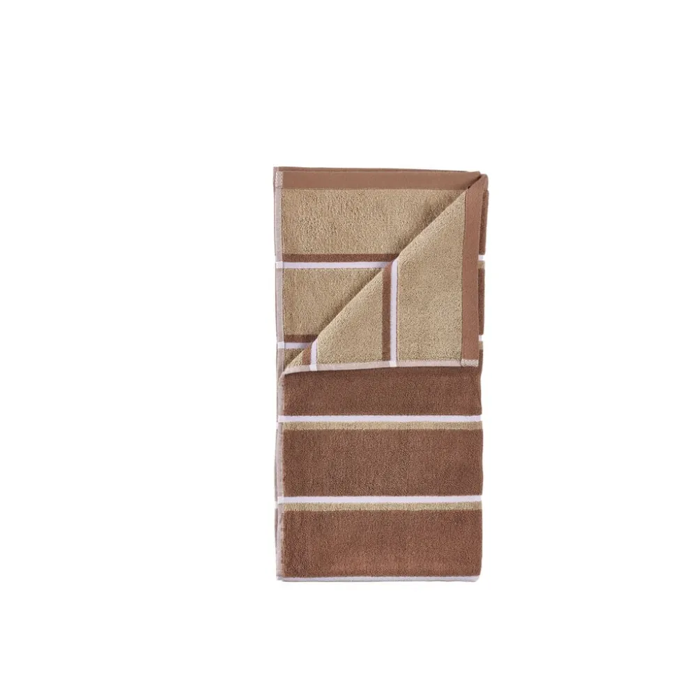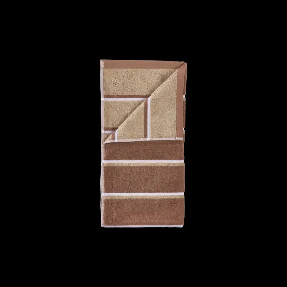 De retroinspirerede striber tilføjer et grafisk, urbant touch, og med en blød, kraftig kvalitet i garnfarvet 600 grams bomuld, føles håndklædet lige så lækkert, som det ser ud.