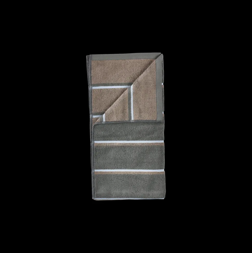 De retroinspirerede striber tilføjer et grafisk, urbant touch, og med en blød, kraftig kvalitet i garnfarvet 600 grams bomuld, føles håndklædet lige så lækkert, som det ser ud.