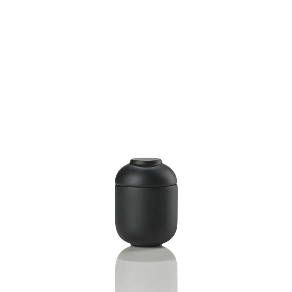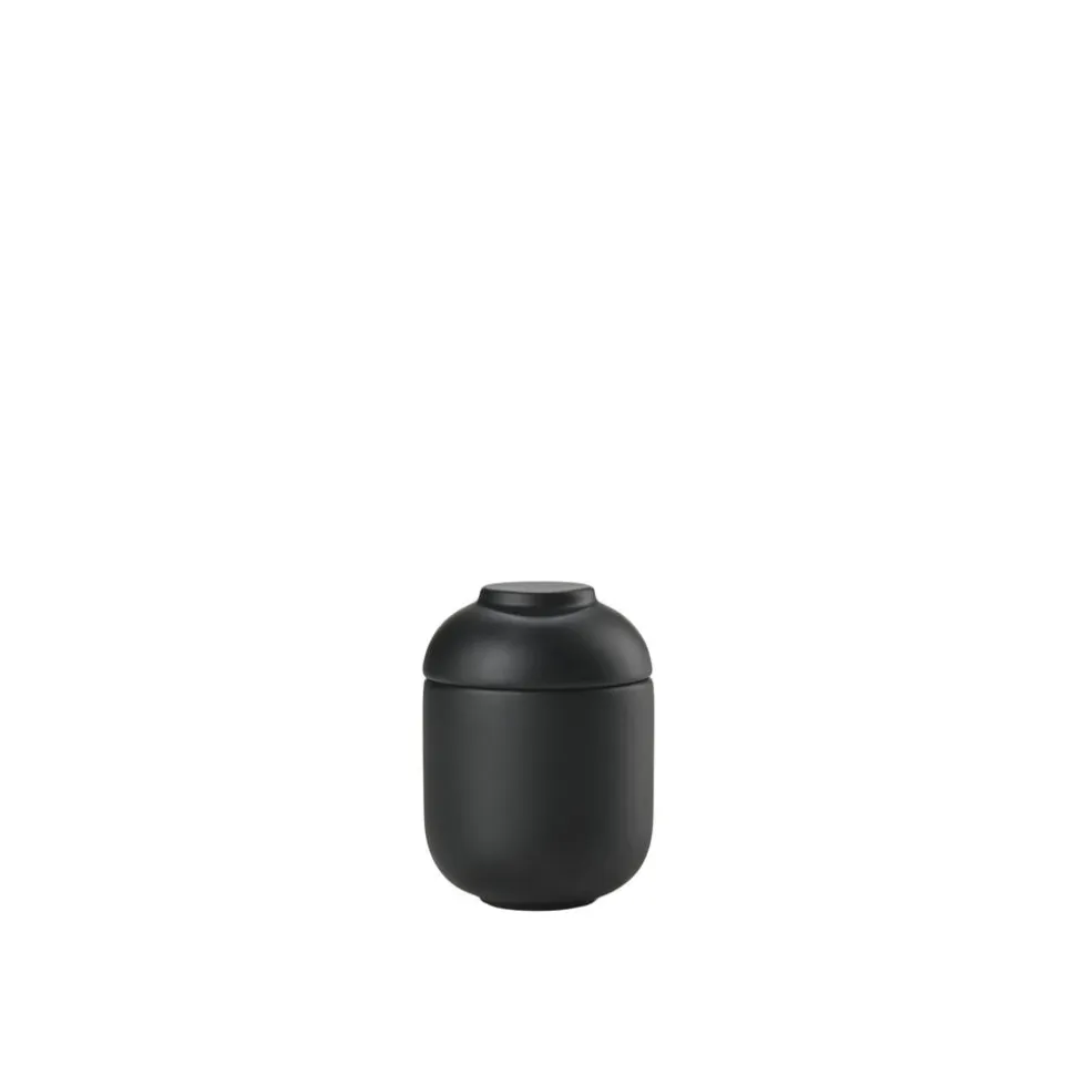 SENSU-krukkerne med låg findes i to forskellige størrelser. Den smalle krukke kan fx bruges til vatpinde eller tandstikkere. Låget til denne passer perfekt som fyrfadsstage, hvis du vender det om. Den brede krukke er mere rummelig og egner sig godt til fx hårpynt, makeup-favoritter eller smykker og ure.