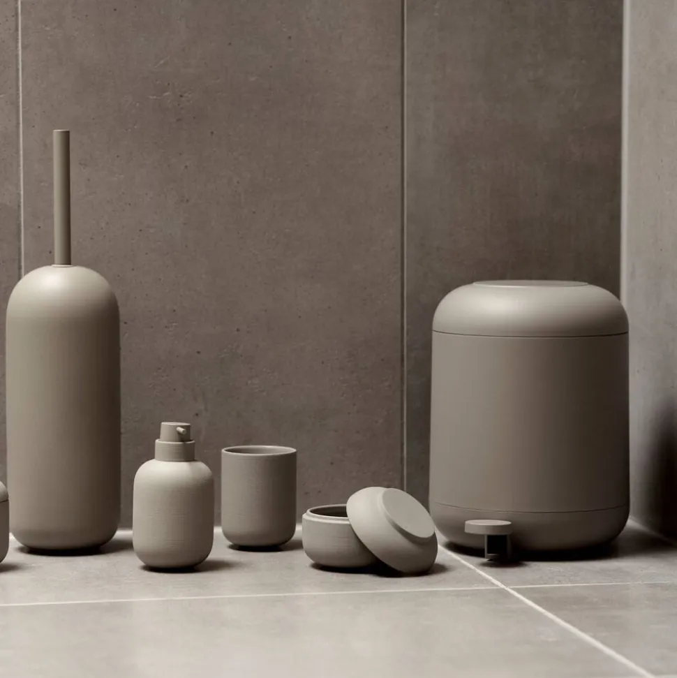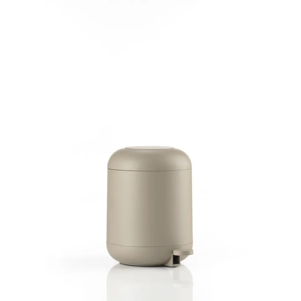 Den 4-liters pedalspand i plast har et buttet cylinderkorpus. Looket komplimenteres på charmerende vis af to cirkelformer. Den ene findes på toppen af låget som en dekorativ detalje, den anden udformet som en lille rund pedal på fronten.