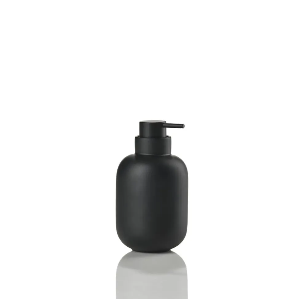 Ved vasken finder du en sød cylinderformet sæbedispenser med et fint lille pumpehoved. Den matcher det klassiske tandbørstekrus, der, ligesom seriens øvrige designs, er udført i stentøj. Takket være stentøjets tyngde og den runde bund står tandbørstekruset sikkert på bordet. Køb evt. flere og brug et af dem til make-up-børster, barbergrej eller andre hverdagsfavoritter, der skal være inden for rækkevidde.
