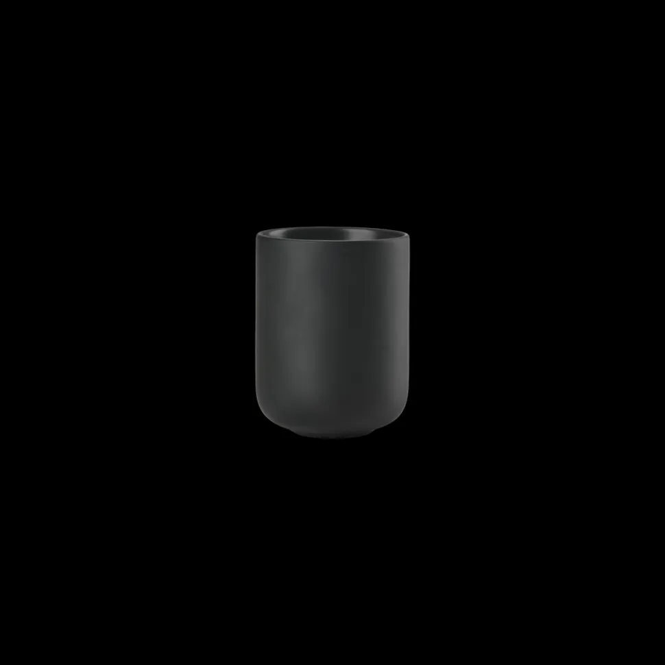 Ved vasken finder du en sød cylinderformet sæbedispenser med et fint lille pumpehoved. Den matcher det klassiske tandbørstekrus, der, ligesom seriens øvrige designs, er udført i stentøj. Takket være stentøjets tyngde og den runde bund står tandbørstekruset sikkert på bordet. Køb evt. flere og brug et af dem til make-up-børster, barbergrej eller andre hverdagsfavoritter, der skal være inden for rækkevidde.