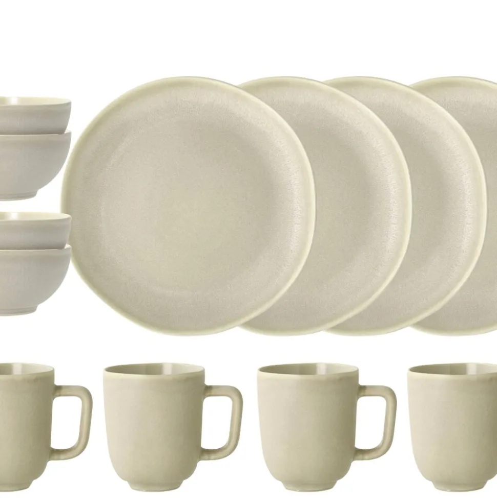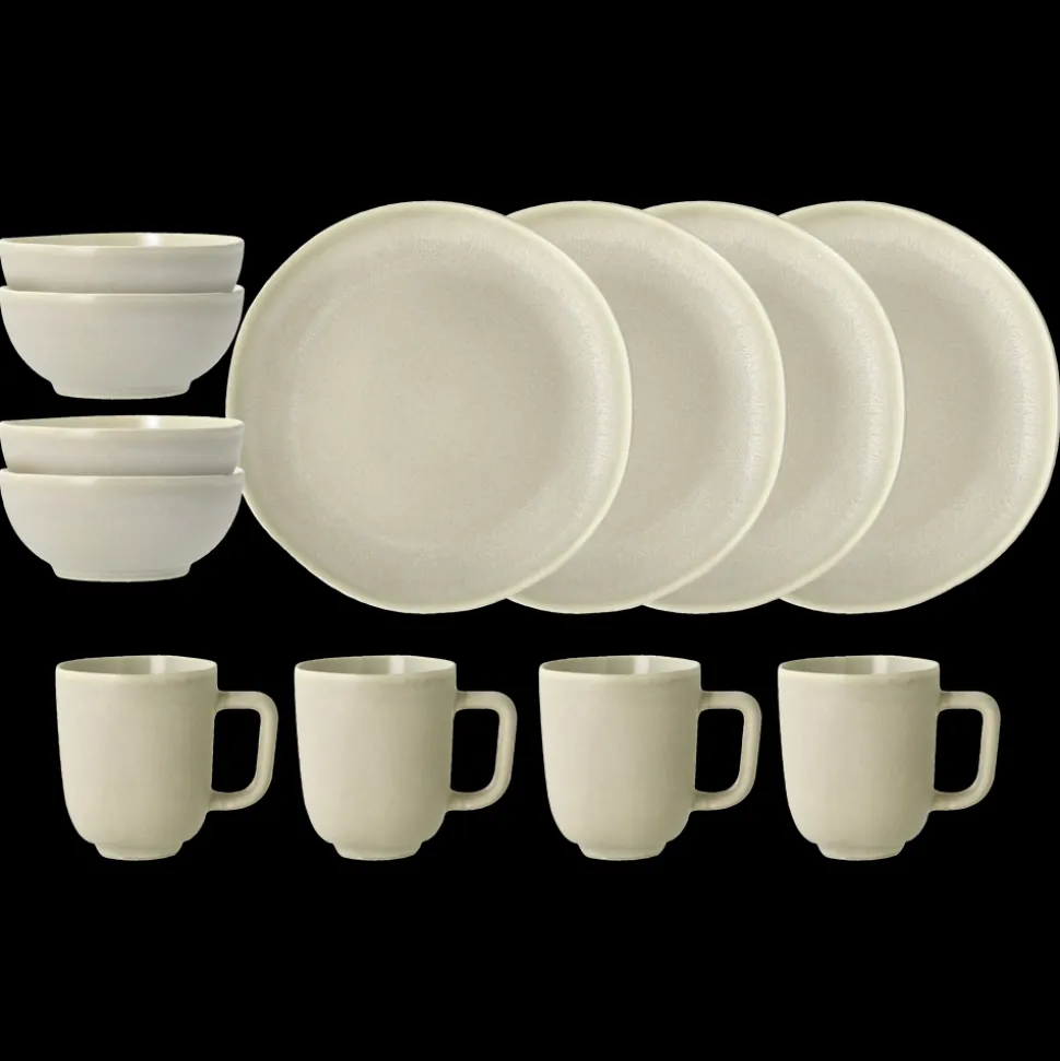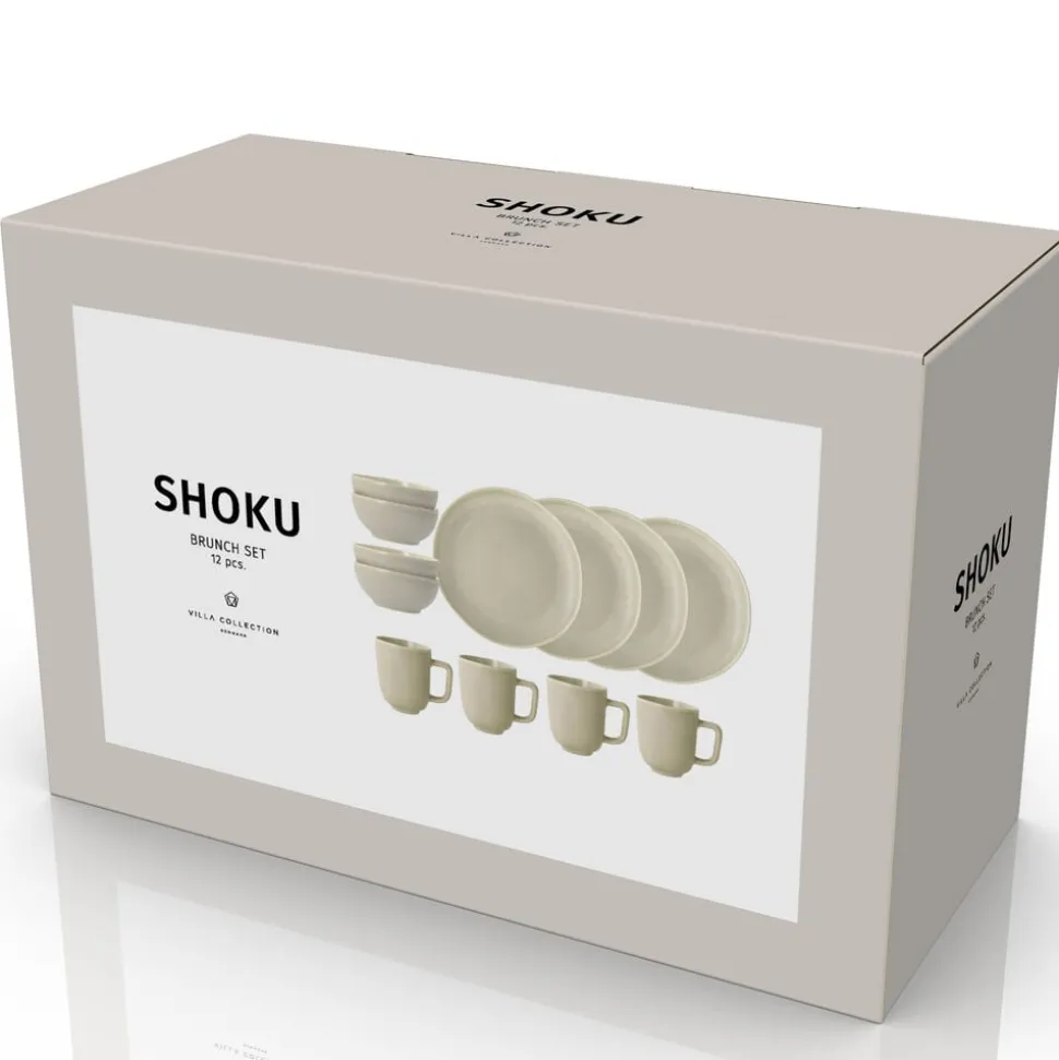 Det smukke Shoku brunchsæt indeholder 4 frokosttallerkener, 4 krus med hank, 33 cl, og 4 skåle 12,5 cm.