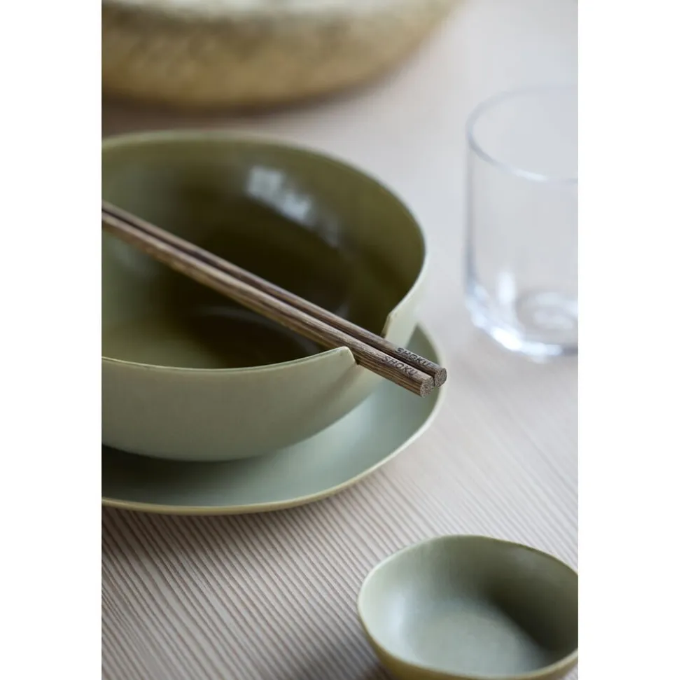 Denne ramenskål med en fordybning i skålens kant, hvor spisepinde eller bestik kan hvile, er specielt designet til ramen, supper og gryderetter. Den rummelige form og harmoniske linjer gør den ideel til varme, fyldige retter og skaber en indbydende spiseoplevelse. Velegnet til ovn op til 220 grader, mikroovn og opvaskemaskine.