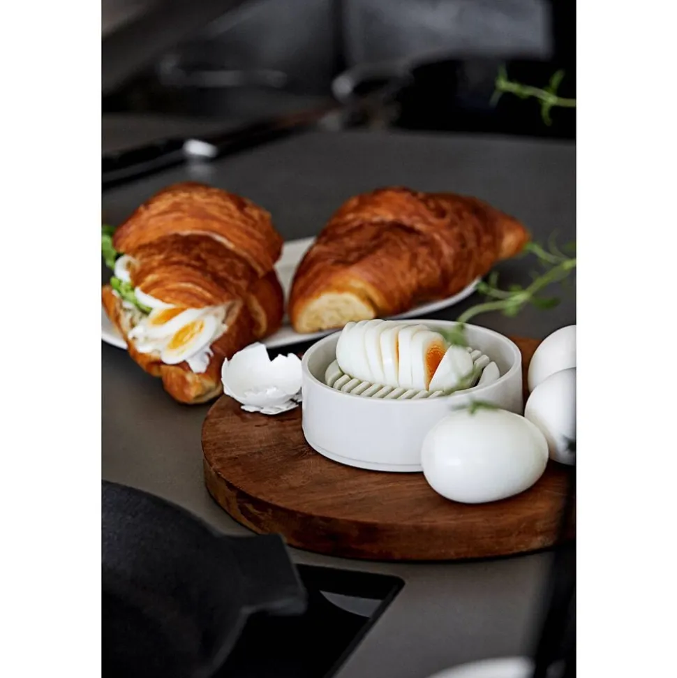Enkel og elegant æggedeler fra Zone Denmark, der med garanti øger din trang til smørrebrød. Den er ikke bare er et effektivt redskab, der kan dele ægget både på langs og på tværs. Når klingerne har skåret ægget i fine skiver, bliver æggedeleren forvandlet til en fin lille serveringsskål, der pynter på frokostbordet.