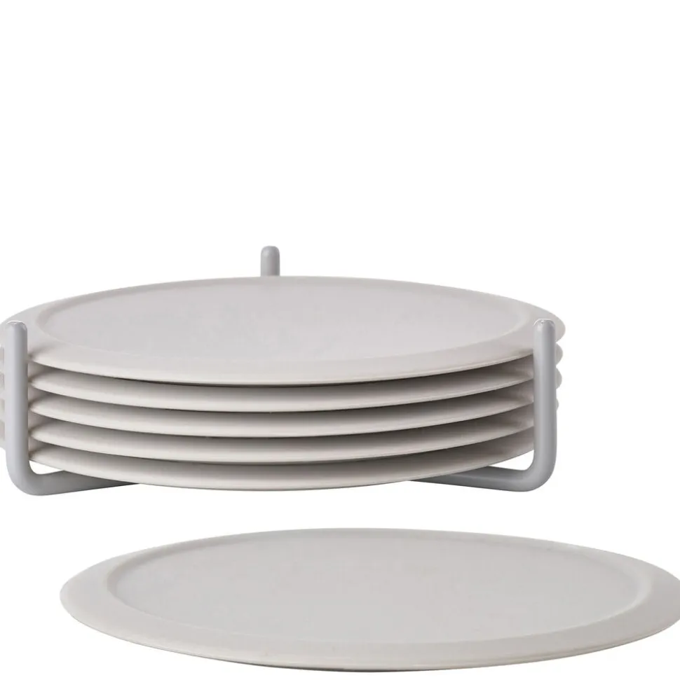 Flotte farvede glasbrikker i silikone. En blød og lydløs landing – sådan kan man bedst beskrive det, når man stiller et glas fra sig på glasbrikken i silikone. Leveres i sæt med seks glasbrikker i praktisk metalholder. Nemme at rengøre. D: 10 cm.