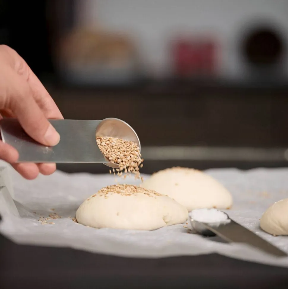 De to praktiske måleskeer i børstet stål er en gave for livet. Et uundværligt makkerpar for alle, der holder af at lave mad og bage. Teskeen og spiseskeen kan lægges i ske i skuffen, så de ikke fylder meget. Til gengæld gætter vi på, du vil bruge dem meget. Til kaffe, til krydderier, til hverdag og fest.