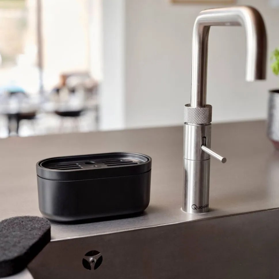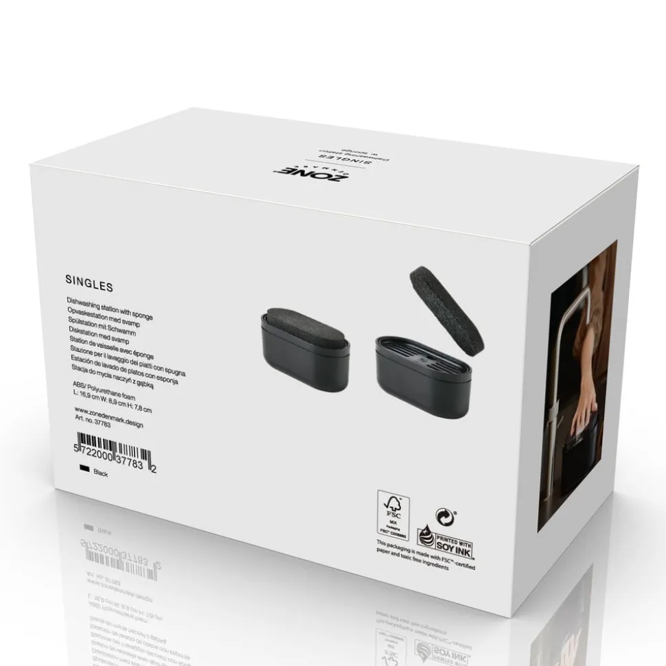 Singles opvaskestation er et lille hverdagsvidunder, der gør opvasken både nemmere og mere funktionel. Med sit gennemtænkte design forener den svamp og sæbedispenser i ét – og svampen har naturligvis både en blød og en grov side. Hæld opvaskemiddel i den nederste skål, tryk svampen let ned, og så er du i gang. Overskydende vand drænes diskret væk og samles i et lille, skjult reservoir, der nemt kan tømmes.