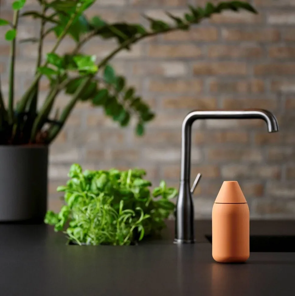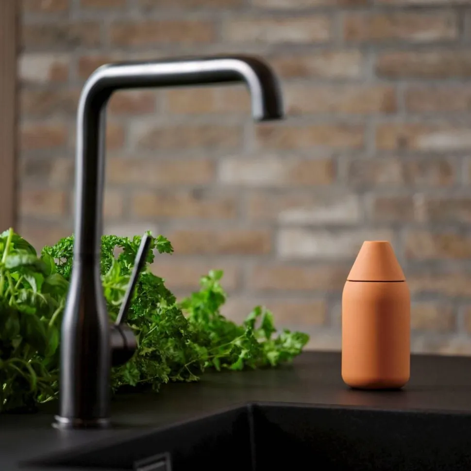 Af og til kan små designs få dig til at gøre store øjne. Se bare hvor lækkert sæbedoseringen ved vasken kan løses. Singles dispenserens raketformede krop har en futuristisk elegance. Takket være den brede, cylinderformede bund står dispenseren stabilt på bordet. Med et let tryk kan du dosere sæbemængden fra hullet i toppen. Når der skal påfyldes en ny portion, skruer du toppen af med et snuptag.