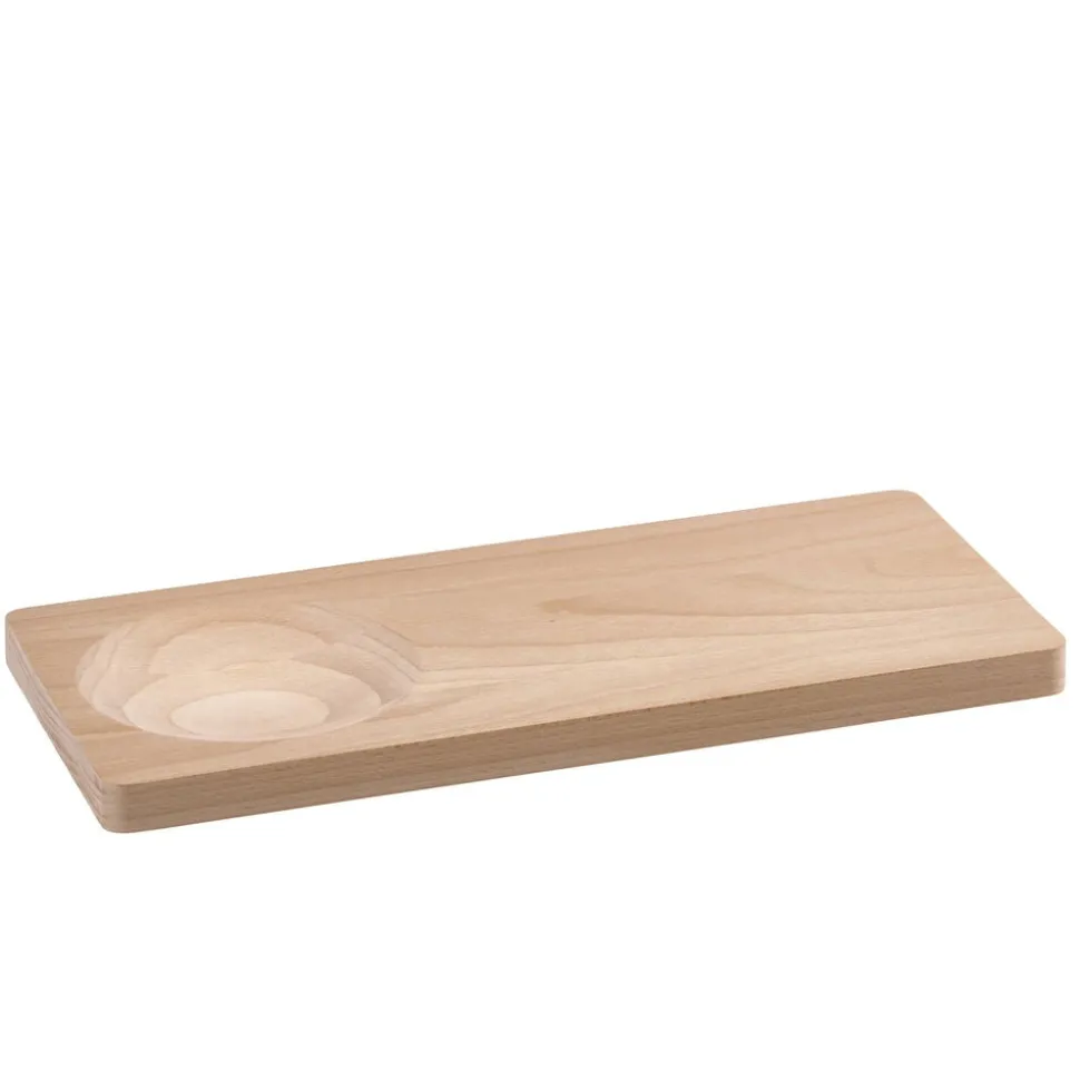 Smukt skærebræt i solid kvalitet udført i lyst bøgetræ. Brættet har et organisk udtryk med rundede hjørner og to forskellige sider. Den ene er traditionel og flad, mens den anden har en cirkelformet udhuling i den ene ende, der åbner for flere anvendelsesmuligheder. Brug brættet som tapasfad og placér en skål med nødder, olie eller dip i udhulingen. Du kan også bruge det til at hakke krydderurter i med hjælp fra vuggekniven i samme serie.