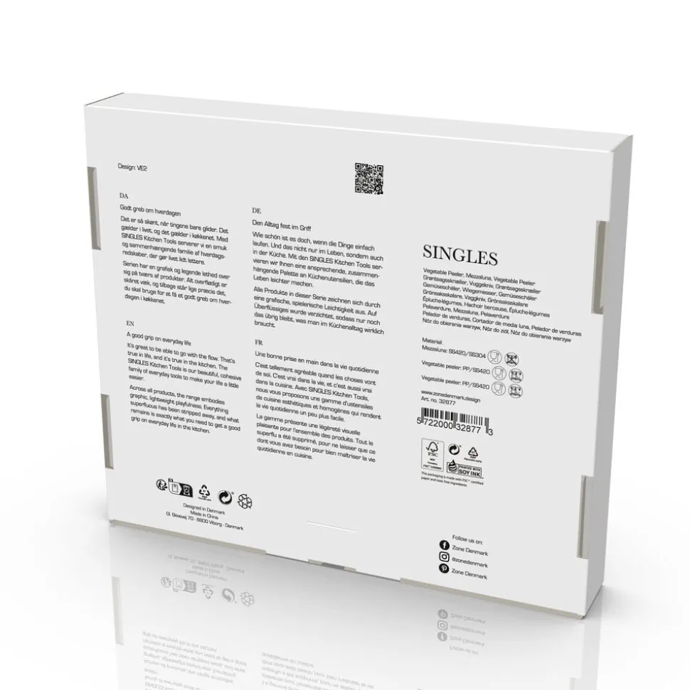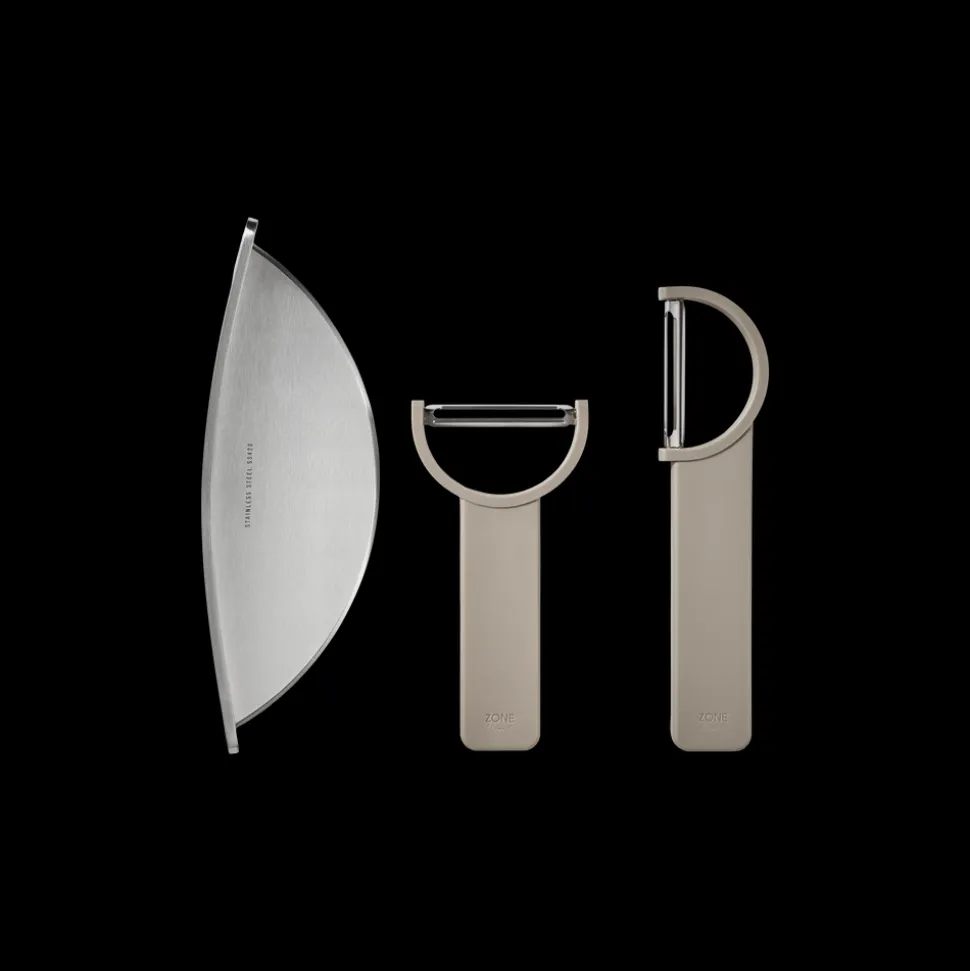 Snittesættet er et sæt af 3 dele, nemlig vuggekniv og to forskellige grøntsagsskrællere.