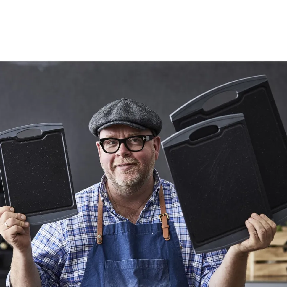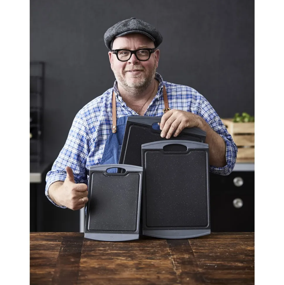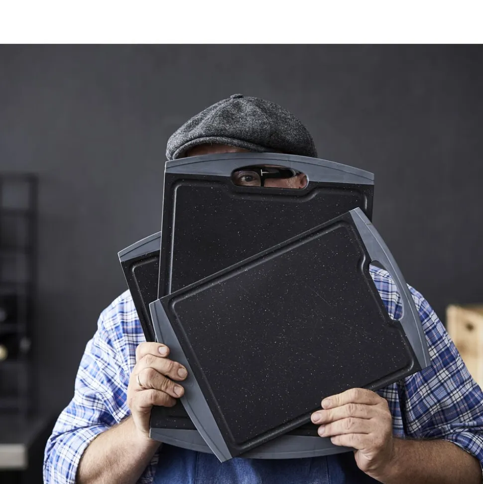 Skærebrættet er fremstillet med en skæreflade i PP plast og kant i TPE gummi.