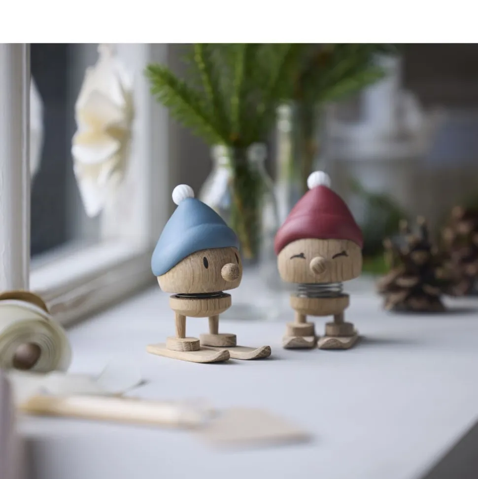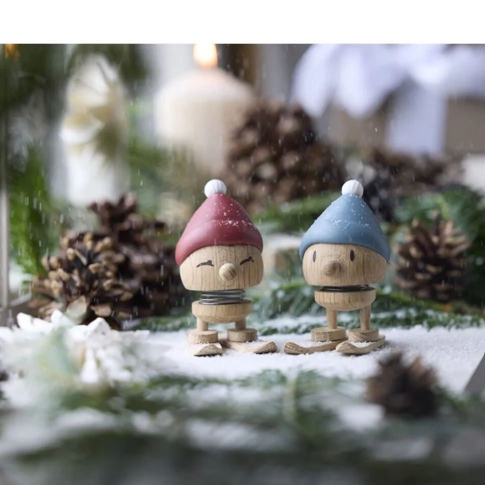 Giv den rødkindede skihoptimist et lille puf og se den hoppe af glæde over den glitrende hvide sne på fjeldet. Skiing Bimble står klar med sin røde tophue – både spændt og stolt – klar til eventyr i vinterlandskabet. Skiene kan tages af og på.