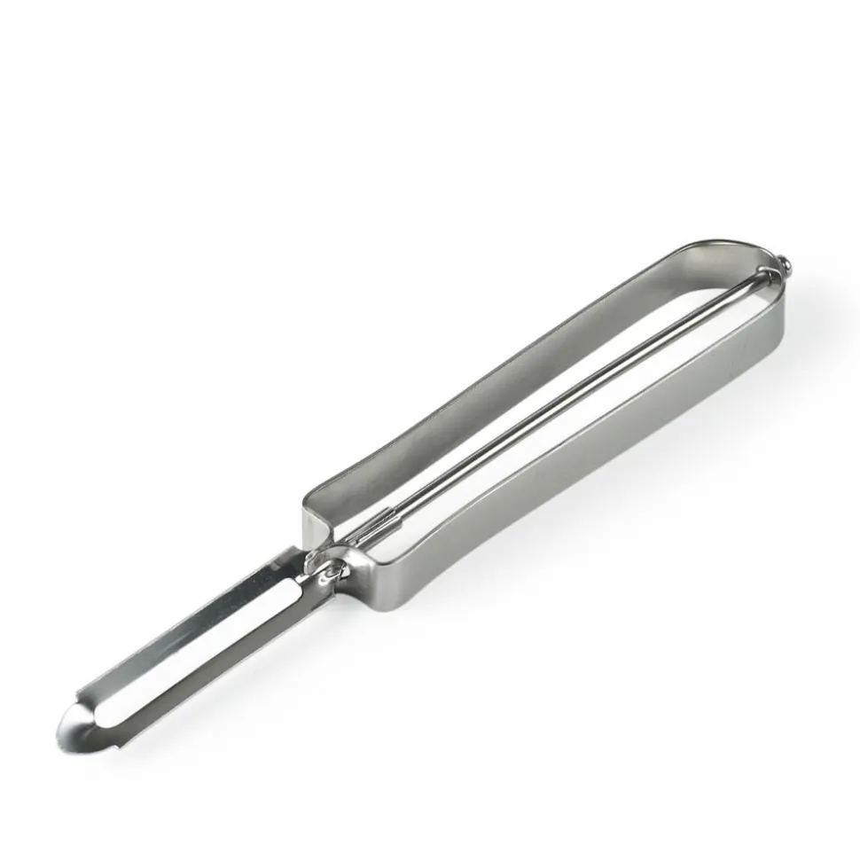 Skrællekniv i stål med vippeblad, hvilket gør det nemt at skrælle alt fra kartofler til rodfrugter.
