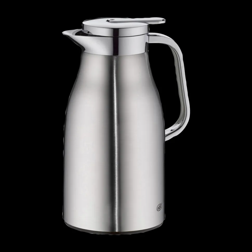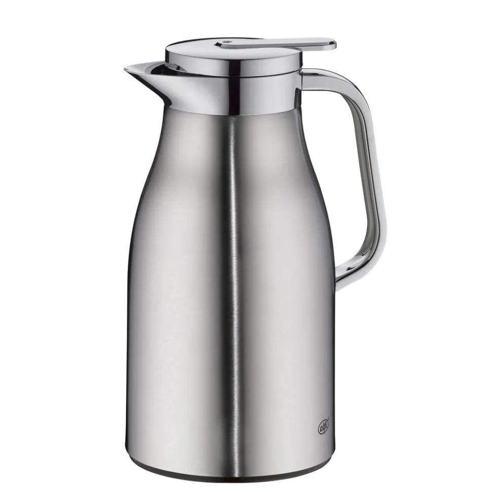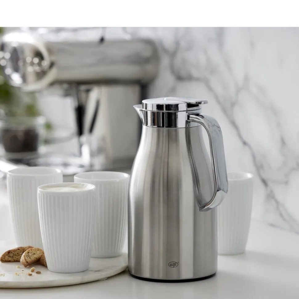Alfi Skyline kombinerer cool stil med høj funktionalitet i køkkenet og på kaffebordet. Termokande i rustfrit stål i høj kvalitet. Dobbeltvægget AlfiDur-indsats i isolerende og hærdet vakuum-glas. Holder varmt i op til 12 timer og koldt i op til 24 timer. AromaSafe-princippet bevarer kaffens runde smag. Unikt og praktisk hældesystem. Kan betjenes med én hånd. Ergonomisk, forkromet metalhåndtag. Fri for BPA. Designet af PEARL CREATIVE.