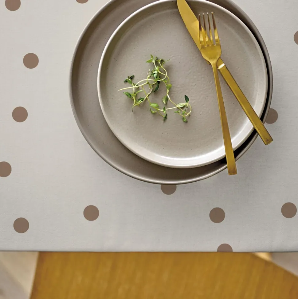 Dæk bordet med forfriskende prikker i taupe og skab en afslappet atmosfære med vores iøjnefaldende akryldug, der passer perfekt ind i en moderne og grafisk indretning. Kombiner gerne med forskellige kopper og tallerkner i friske og optimistiske farver for at skabe et levende udtryk. Akrylduge er det ideelle valg, når du ønsker en hyggelig og funktionel borddækning med hele familien.