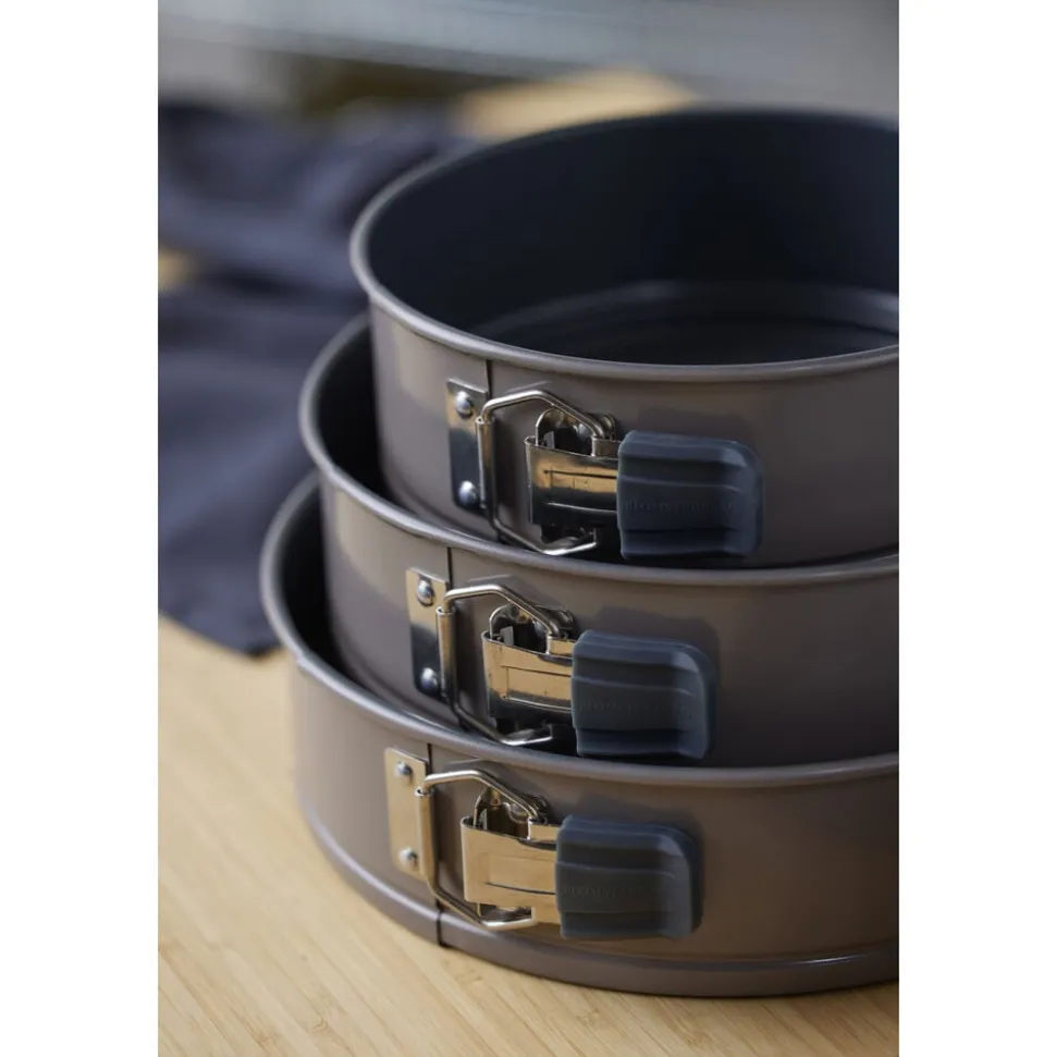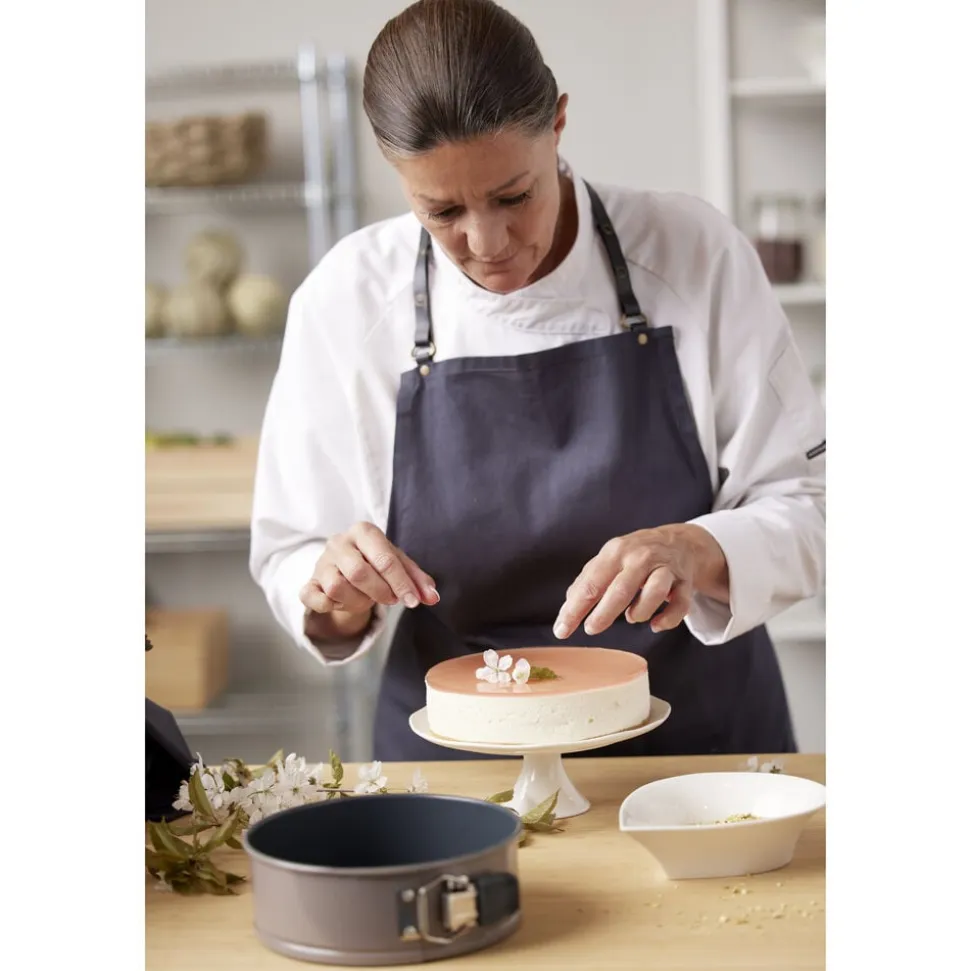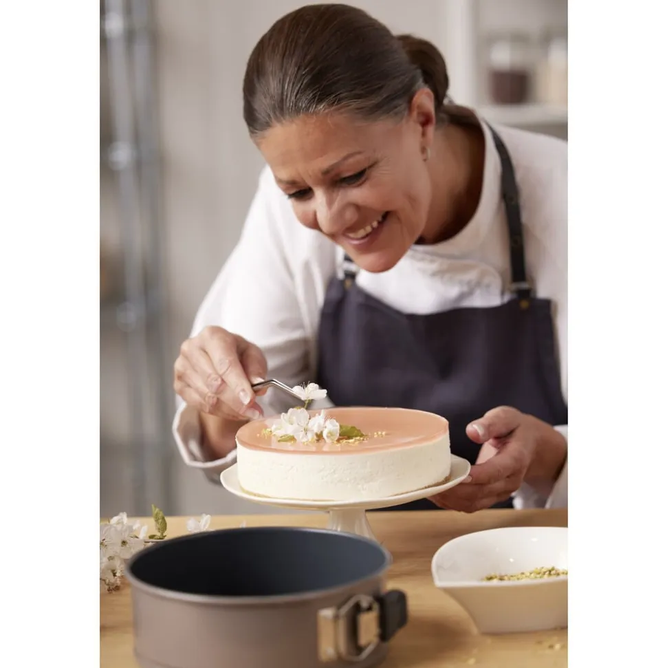 Springform i ekstra kraftigt kvalitetsstål med en bundtykkelse på 1 mm og en praktisk non-stick-belægning, som får de hjemmebagte lækkerier til at slippe formen lettere. Designet er elegant med en smuk latte farve på udvendig side. Springformen er perfekt til fx cheesecake, chokoladekage, gulerodskage samt lagkage- eller dessertbunde. Bør vaskes før brug første gang. Springformen kan tåle temperaturer op til max 230 °C.
