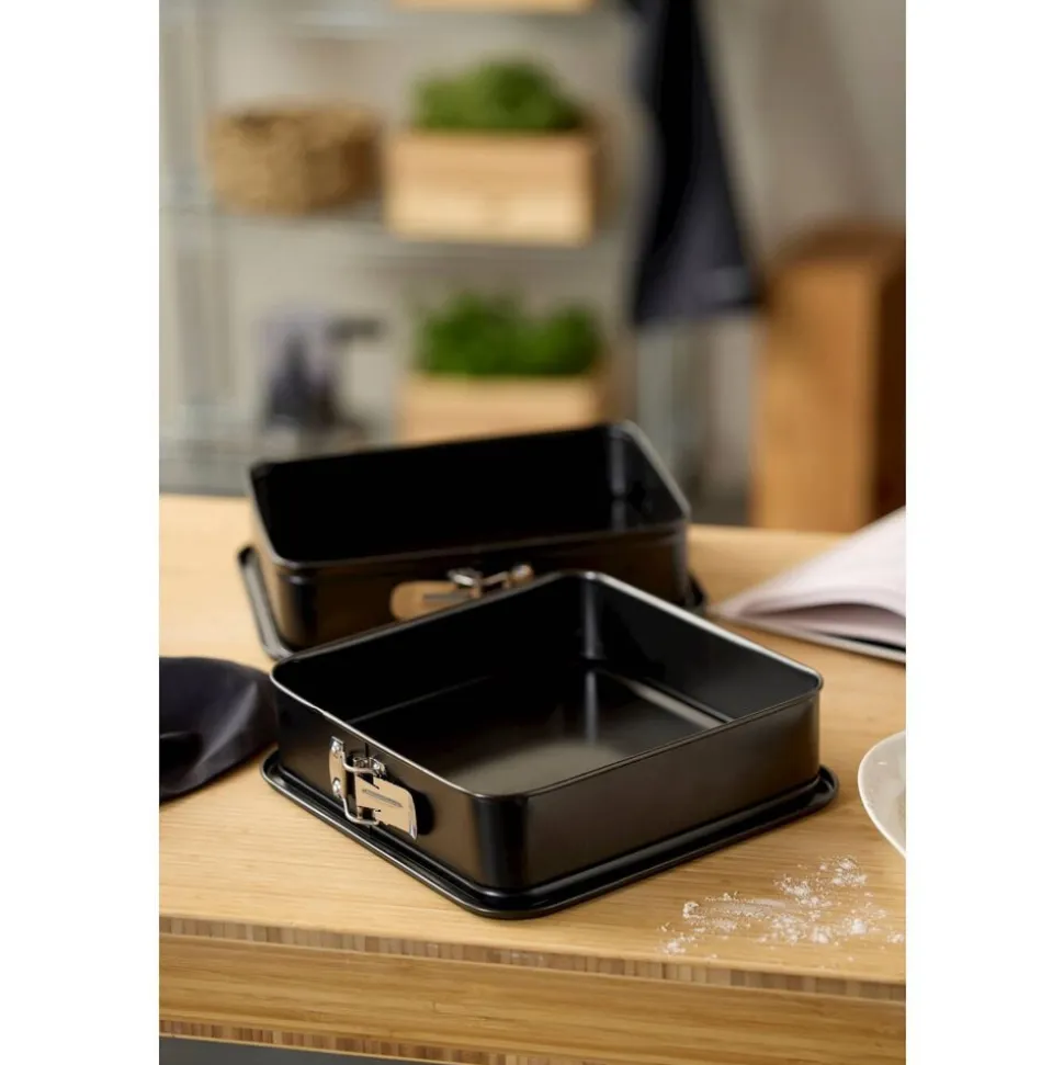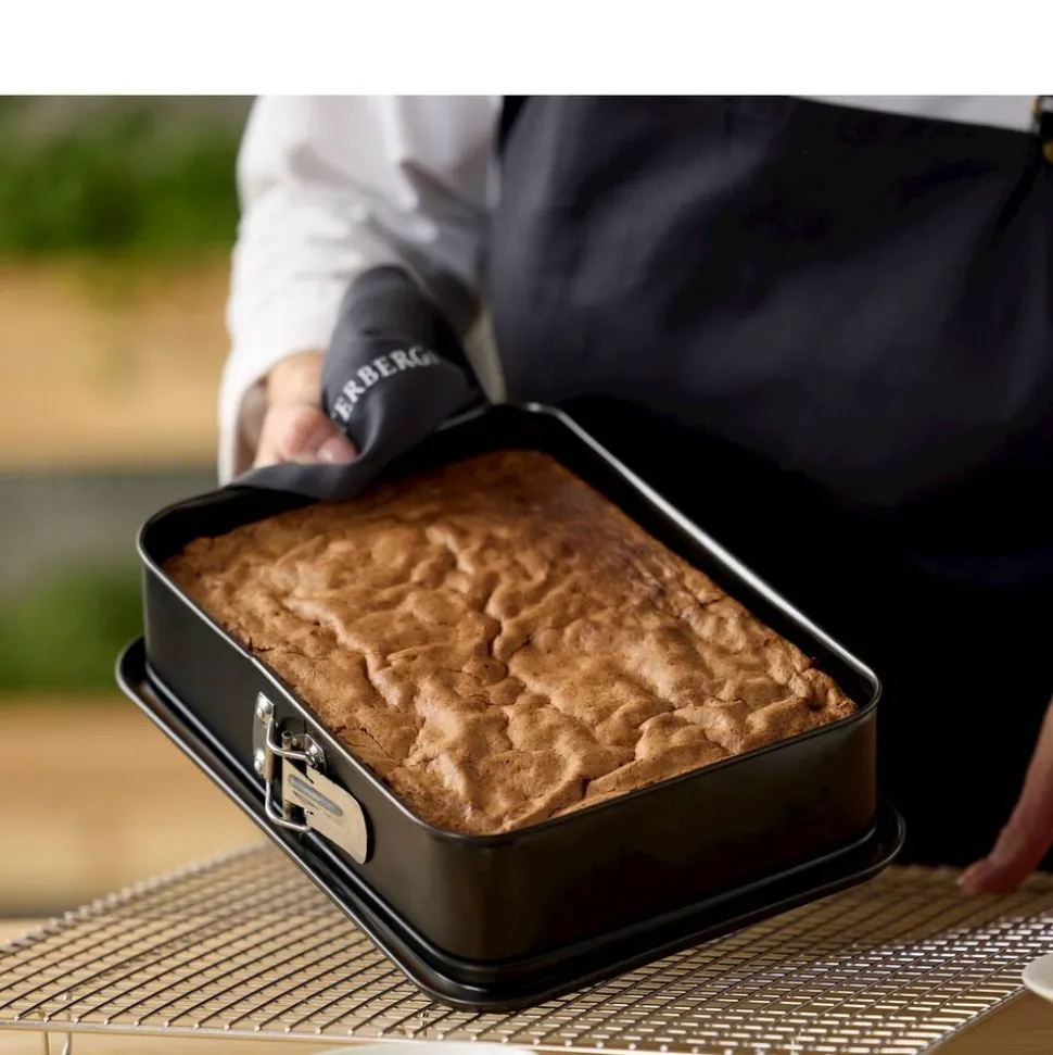 Rektangulær springform i let stål med non-stick belægning. Anvendes til alle slags bagte rørekager som fx chokoladekage, til lækre brød og tykke lagkage- og dessertbunde. Smør formen indvendigt ved bagning. Vaskes i opvaskemaskine før første brug. Den keramiske belægning er fremstillet af råvarer, der ikke indeholder PFAS.