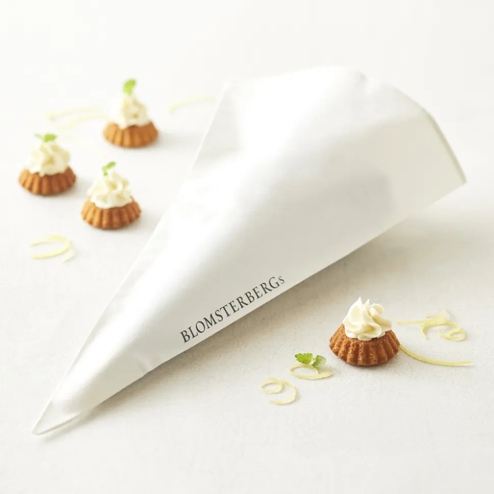 Sprøjtepose i 100 % bomuld, 46 cm, med en kapacitet på ca. 3,4 liter. Inden brug skal det lille hul i sprøjteposen tilpasses tyllerne. Klip med en saks 2-3 mm af posen ad gangen indtil tyllens smalle ende stikker 1 cm ud.