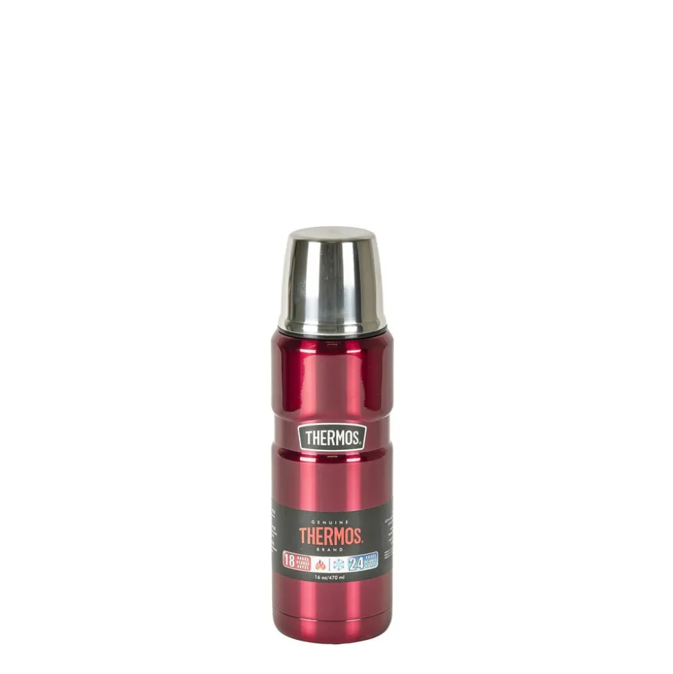 Thermos Stainless King 470 ml termoflaske i rustfrit stål. Låget kan bruges som kop, og flasken er velegnet til både kolde og varme drikke. Holder indholdet varmt i op til 12 timer og koldt i op til 24 timer.