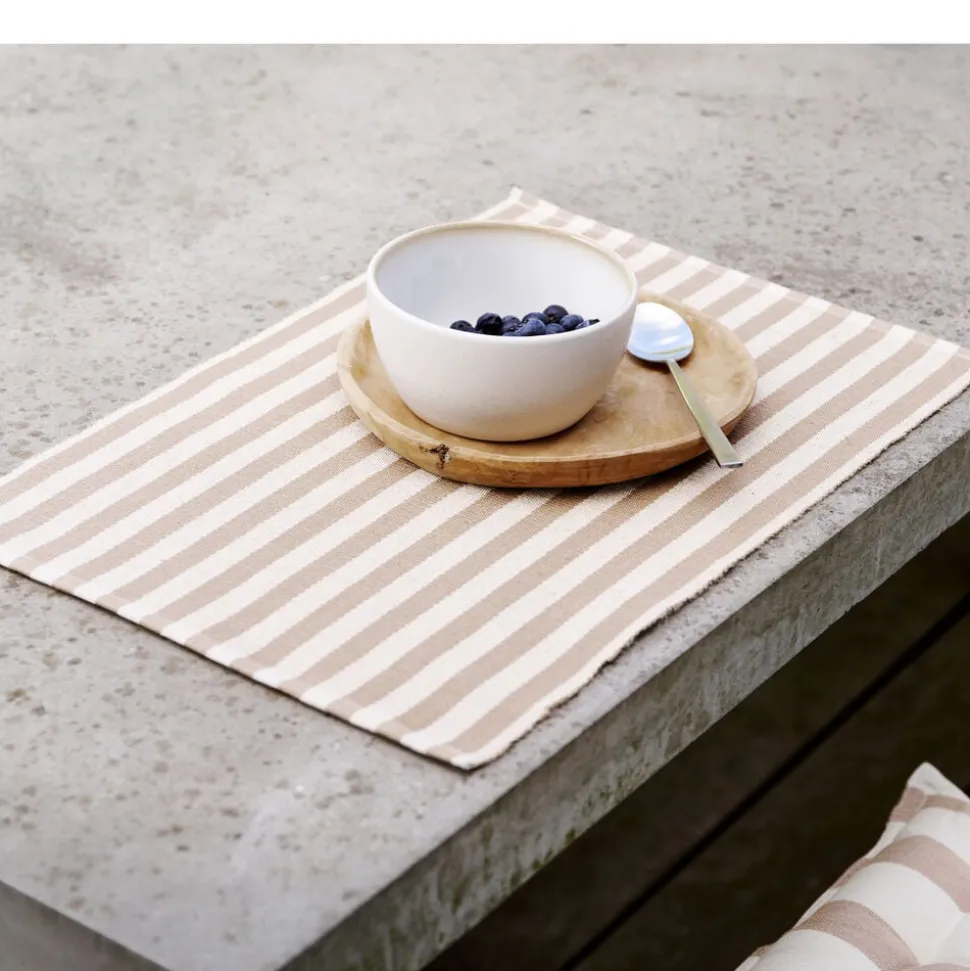 Disse klassiske striber med brede og ensartede linjer udgør den perfekte baggrund for hverdagslivet. Dækkeservietten er lavet af bomuld og jutefibre, hvilket giver den et charmerende og let rustikt udseende. Dækkeservietten fås i en række flotte farver, som giver indretningen et optimistisk løft.