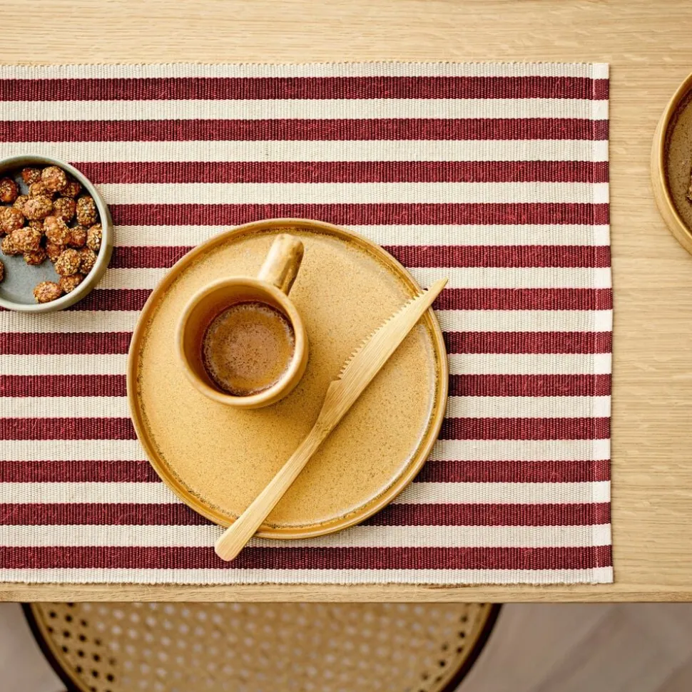 Disse klassiske striber med brede og ensartede linjer udgør den perfekte baggrund for hverdagslivet. Dækkeservietten er lavet af bomuld og jutefibre, hvilket giver den et charmerende og let rustikt udseende. Dækkeservietten fås i en række flotte farver, som giver indretningen et optimistisk løft.