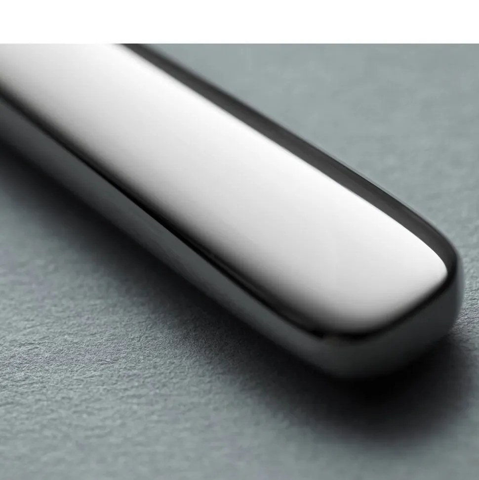 Med en kombination af elegant formgivning og behagelige linjer i rustfrit stål passer Steel Line perfekt ind i de fleste indretninger og borddækninger. Steel Line er skabt af Henning Seidelin, en af Danmarks bedste billedhuggere. Tåler opvaskemaskine.