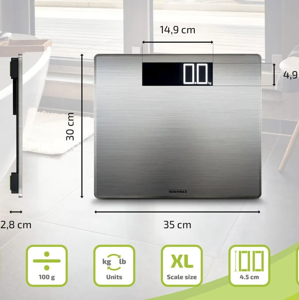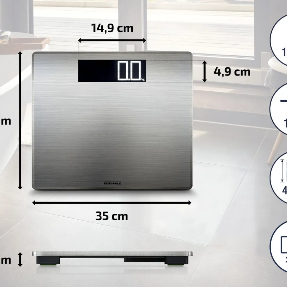 Style Sense Safe 300 er en personvægt i stilrent design med en platform i rustfrit stål. Displayet er oplyst og viser vægten tydeligt med store 4,5 cm tal. Vægten starter automatisk, når du træder op, og slukker igen, når du er færdig. Vejer op til 180 kg med interval på 100 g.