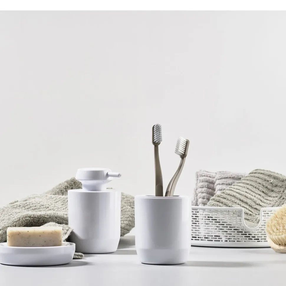 Serien består af sæbedispenser og tandbørstekrus i henholdsvis en lav og buttet og en høj og slank version, samt sæbeskål, der holder sæben tør og hygiejnisk. Pedalspanden rummer 4 liter og skjuler de mekaniske dele i designet.