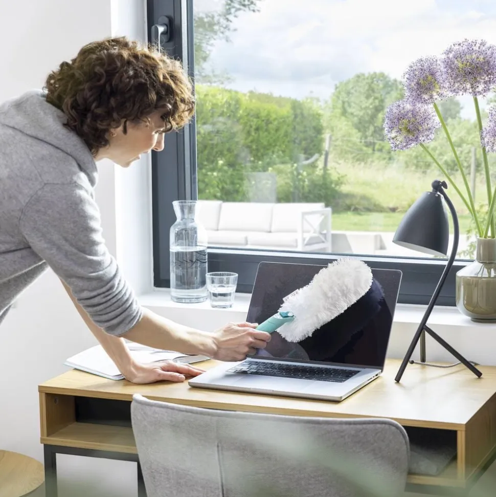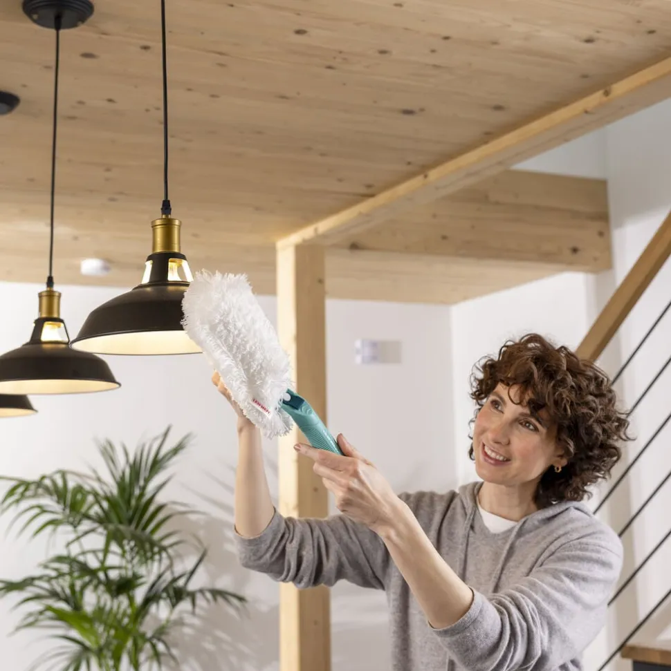 Superduster støvkost har en meget høj tiltrækningskraft, der effektivt tiltrækker og fastholder støv, snavs og hår med sin smarte 360° mikrofiberklud – helt uden at hvirvle støvpartiklerne op i luften. Med hovedets fleksible udformning kan du nemt komme rundt omkring dine ting, og det sørger for, at både store flader og smalle sprækker bliver gjort ordentligt rene – også hjørner og andre svært tilgængelige kroge. Det ergonomiske håndtag ligger godt i hånden, og med Leifheits Click system kan du nemt sætte et ekstra skaft på, så du også kan nå op i højden. Når du er færdig med at støve af, kan mikrofiberkluden tages af og vaskes ved 40 °C. Ryst efter vask og lad tørre.