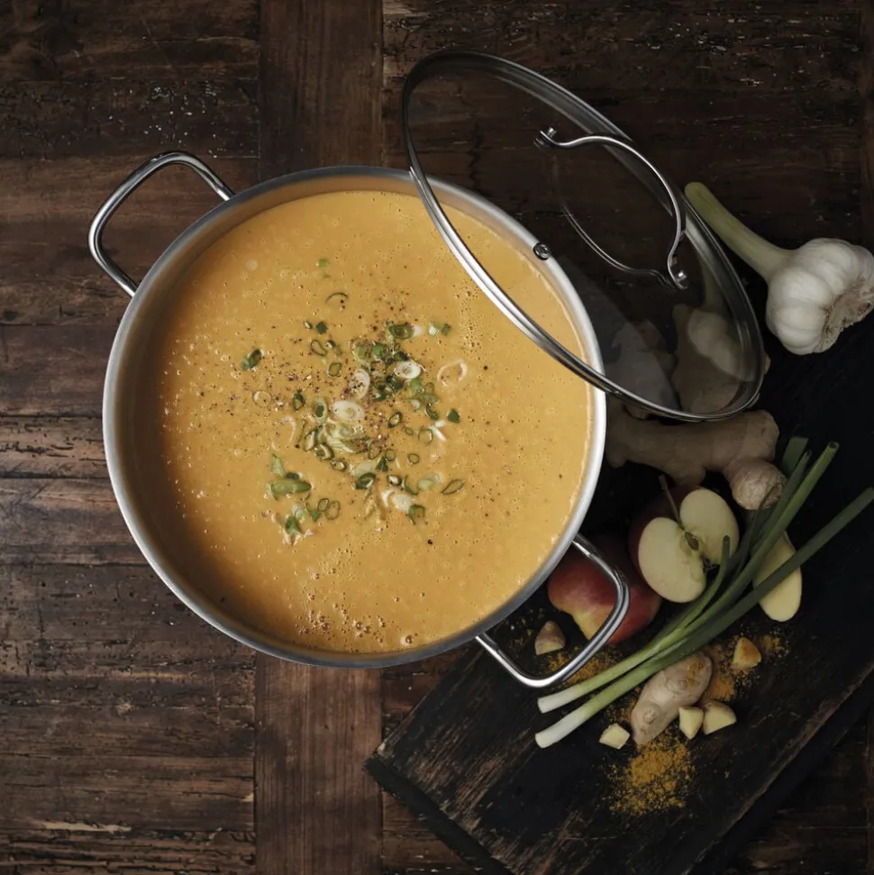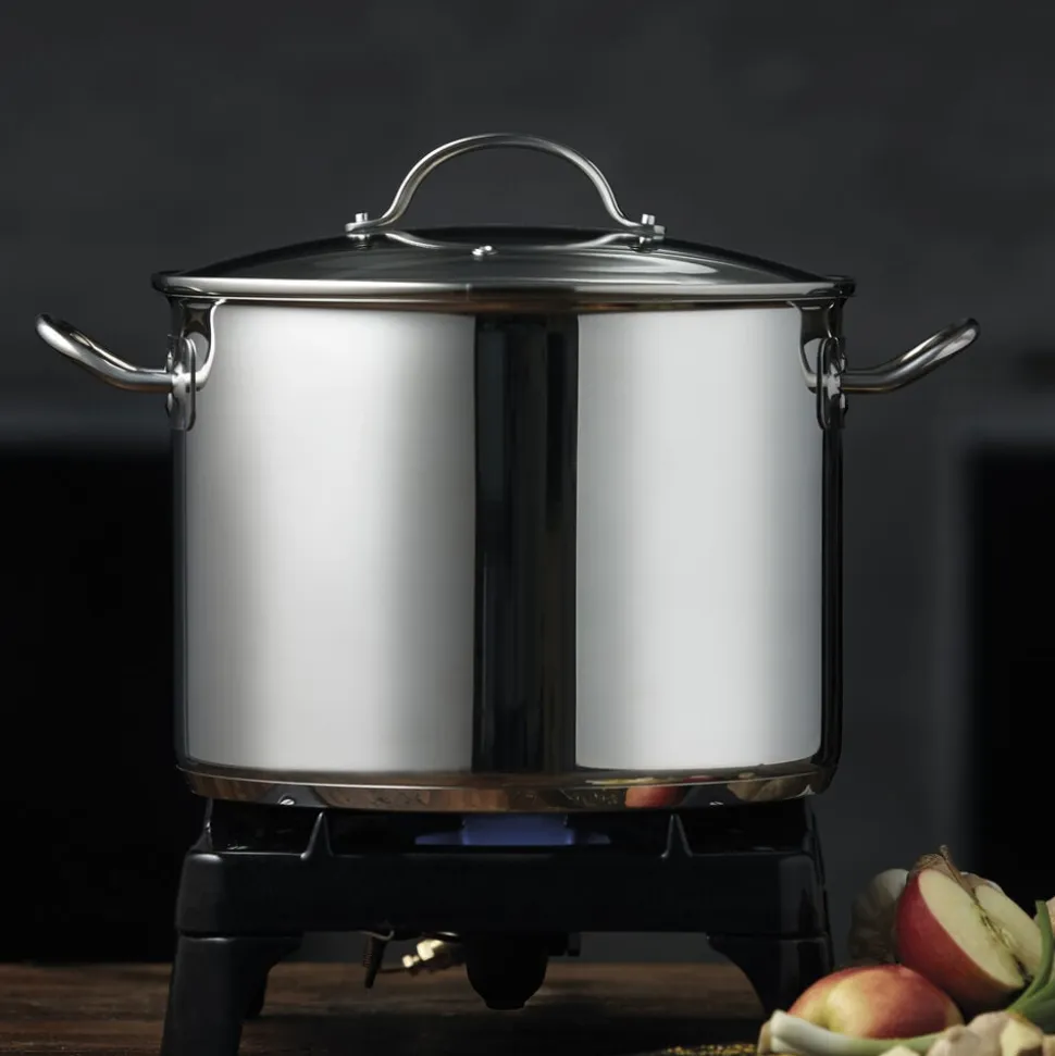 Suppegryde, 10 liter, fremstillet i 18/8 rustfrit stål med kraftig induktionsbund, blankpoleret udvendigt, matpoleret indvendigt og med måleskala.