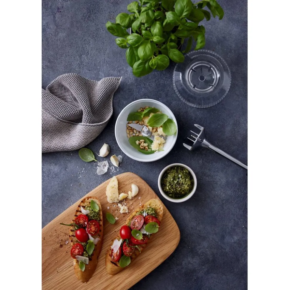 Med din bamix® Swissline og dens tilbehør kan du piske, purere, røre, blende, mikse, male og hakke.