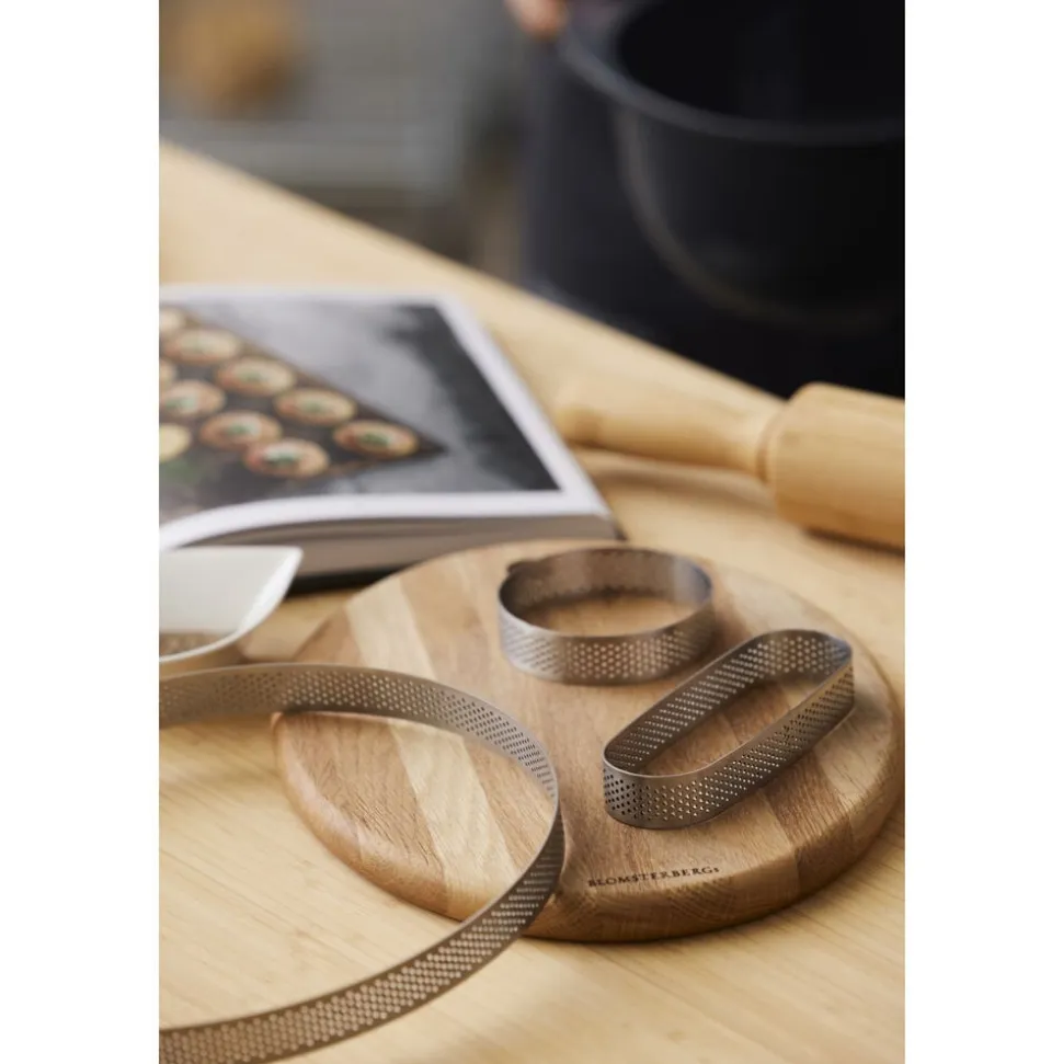 Rund tærtering i perforeret rustfrit stål til sprøde tærter, pizzaer, runde brød og lignende. De fine huller sørger for, at dejen kan komme af med dampen under bagningen. Det sikrer et sprødere resultat, og samtidig glider dejen ikke ned ad siden. Dia. 24 cm, højde 2 cm.