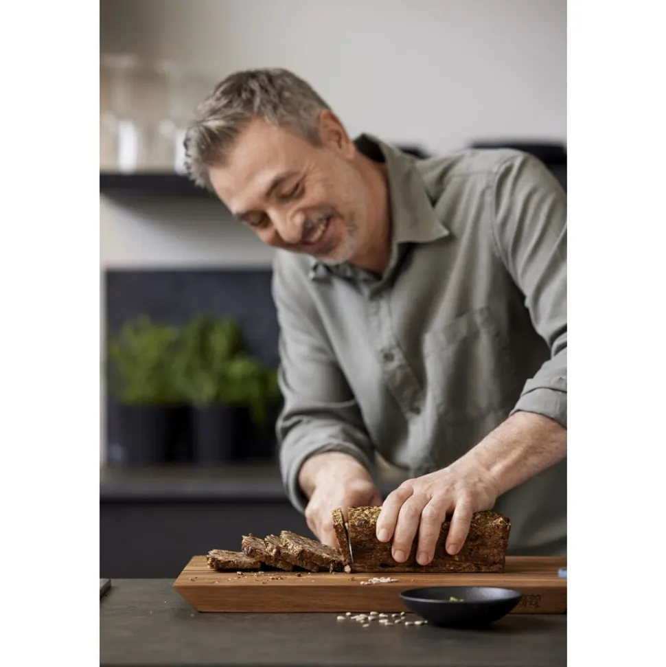 Skærebræt 45 x 28 x 3 cm i naturligt akacietræ. Skærebrættet er en smuk tilføjelse til køkkenet og er velegnet til fisk, kød og grøntsager. Vaskes med varmt vand og mild sæbe. Tåler ikke opvaskemaskine. Brættet kan med fordel efterbehandles med olie et par gange om året for at bevare den flotte overflade.