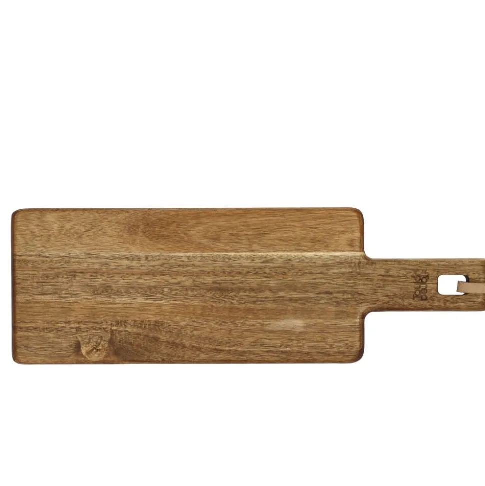Skærebræt 46 x 15 x 1,9 cm i naturligt akacietræ. Skærebrættet er en smuk tilføjelse til køkkenet og er velegnet til fisk, kød og grøntsager. Vaskes med varmt vand og mild sæbe. Tåler ikke opvaskemaskine. Brættet kan med fordel efterbehandles med olie et par gange om året for at bevare den flotte overflade.