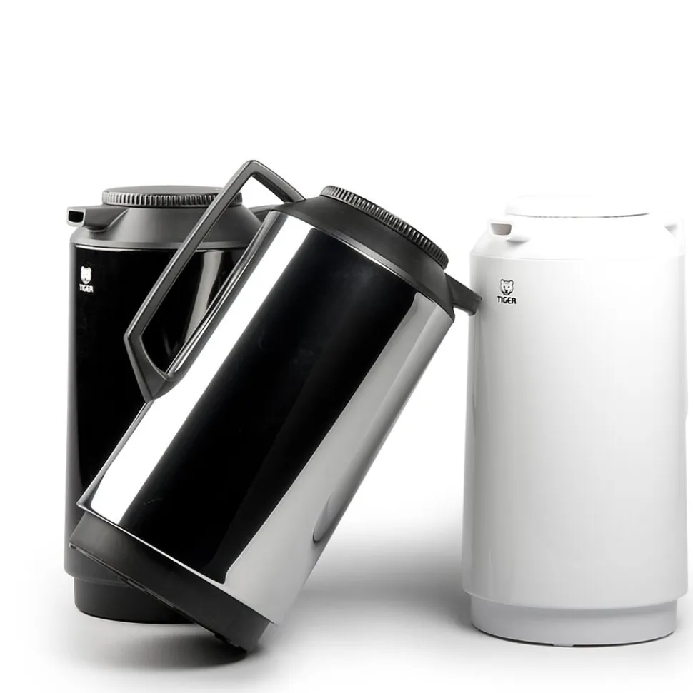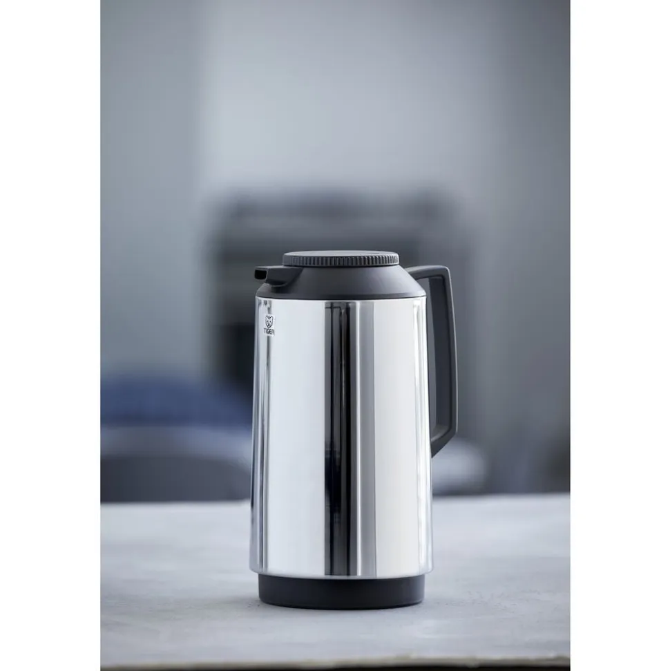 Termokanden fra Tiger er med sit enkle, klassiske design den perfekte termokande og lige velegnet til kolde og varme drikke. Kanden har glasindsats, rummer 1 liter og åbnes og lukkes ved at dreje på låget. Krom.