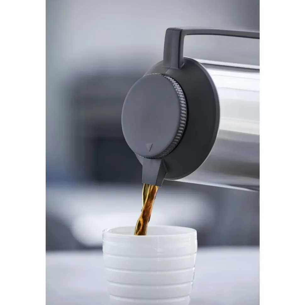 Termokanden fra Tiger er med sit enkle, klassiske design den perfekte termokande og lige velegnet til kolde og varme drikke. Kanden har glasindsats, rummer 1 liter og åbnes og lukkes ved at dreje på låget. Mat stål.