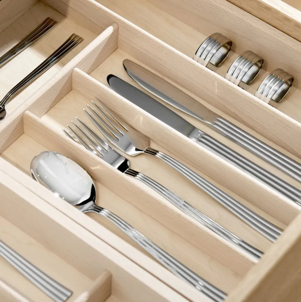 Thebe anno 2024 er tilpasset samtiden. Bestikket er længere og i større harmoni med nutiden – længden på de enkelte bestikdele er øget med ca. 10 %, og materialet er 91 % genanvendt rustfrit stål.