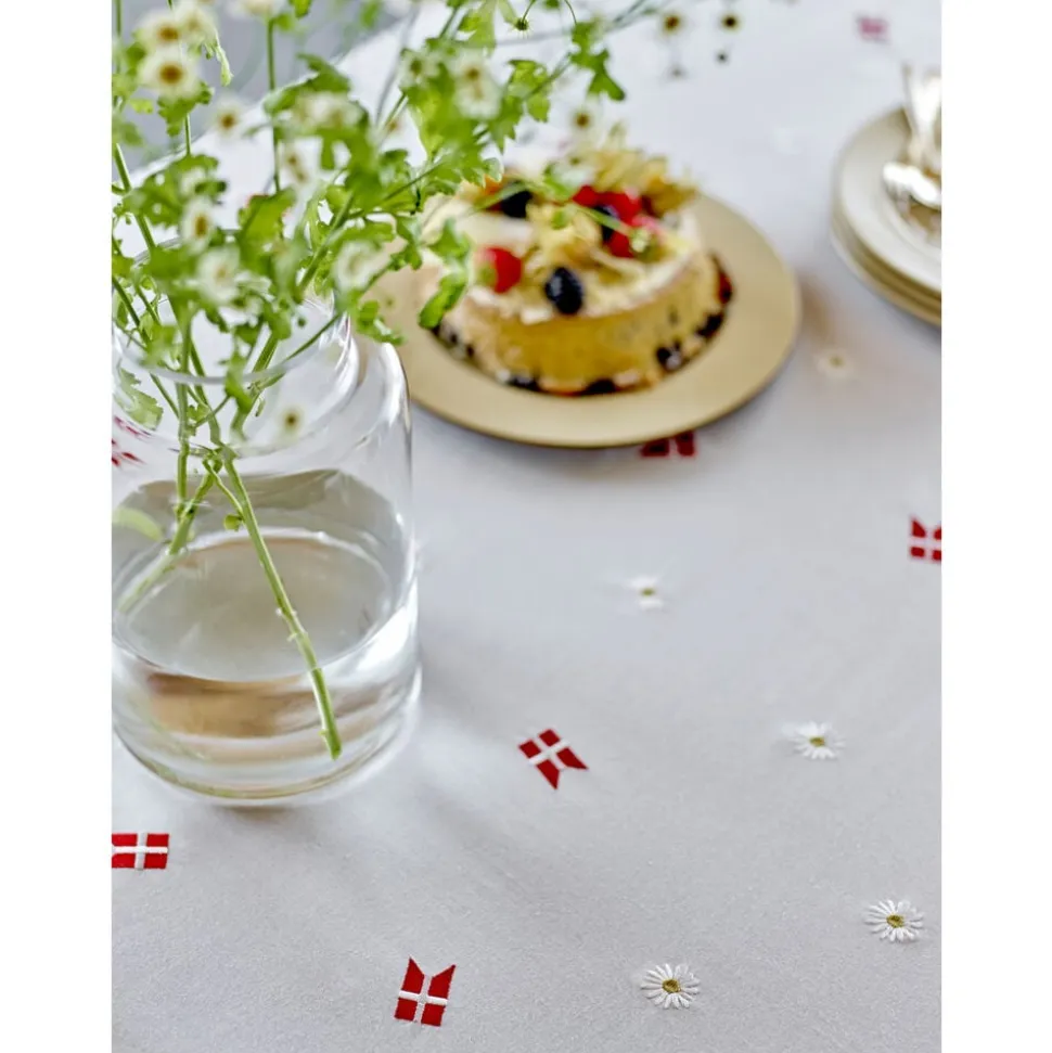 Vi tilbyder Tillykke-designet både som dug og dækkeserviet, så du kan skabe den perfekte festlige borddækning. Lad Dannebrog og margueritter danne baggrunden til dine særlige øjeblikke.