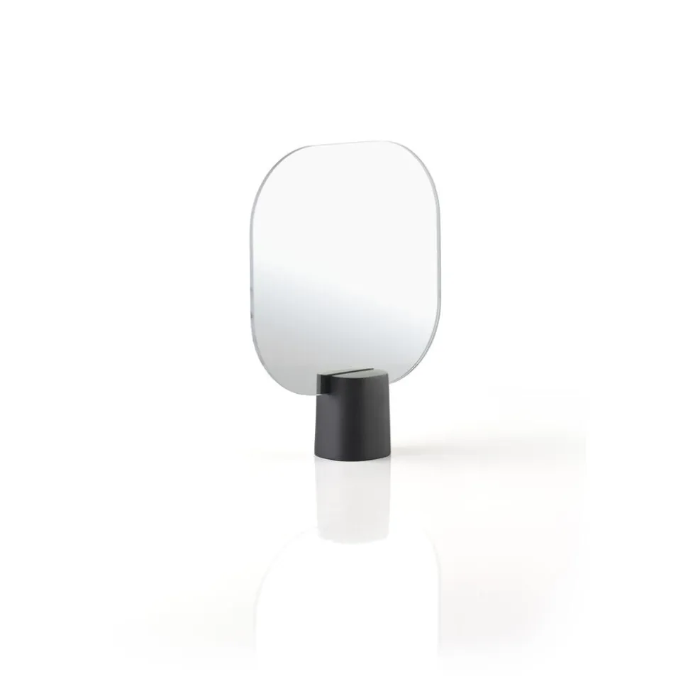 Bordspejlet i hærdet glas med betonfod har et organisk og enkelt udtryk. Det stjæler ikke rummet, men glider naturligt ind i indretningen på både badeværelse, soveværelse og entrehylde. Beton er et populært materiale, da det passer godt sammen med naturmaterialer som træ, keramik og sten. Desuden har beton den fordel, at det bliver brændt ved lavere temperatur end keramik, så man sparer en smule på energien under produktionen. Designteamet Mavro//Lefèvre står bag denne stilsikre udvidelse af Time-universet.