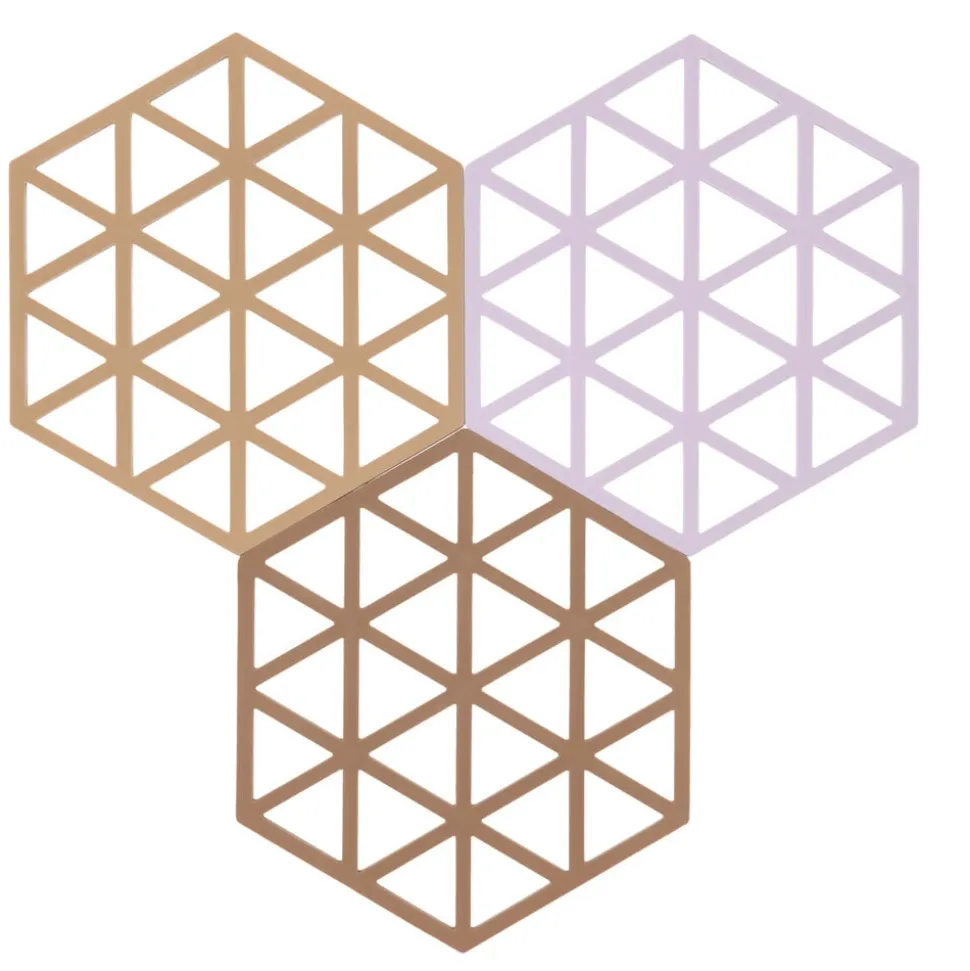Serien er skabt af designertrioen VE2. Triangles fås i mange spændende farver og er flotte at mikse med Hexagon bordskånerne, der har samme ydre dimensioner.