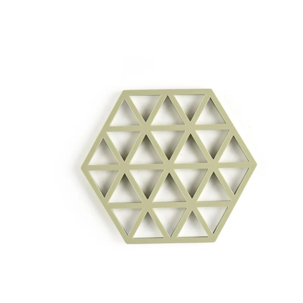 Triangles bordskånerne i silikone er så grafisk dekorative, at de indbyder til at lægge en flok ud i hele bordets længde uden at stille noget på dem. De er varmebestandige op til 250 °C og kan vaskes i opvaskemaskine. 16 x 14 x 0,9 cm.