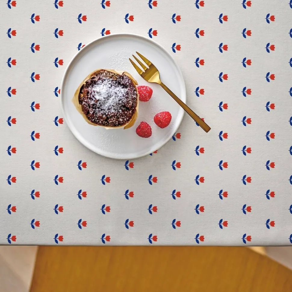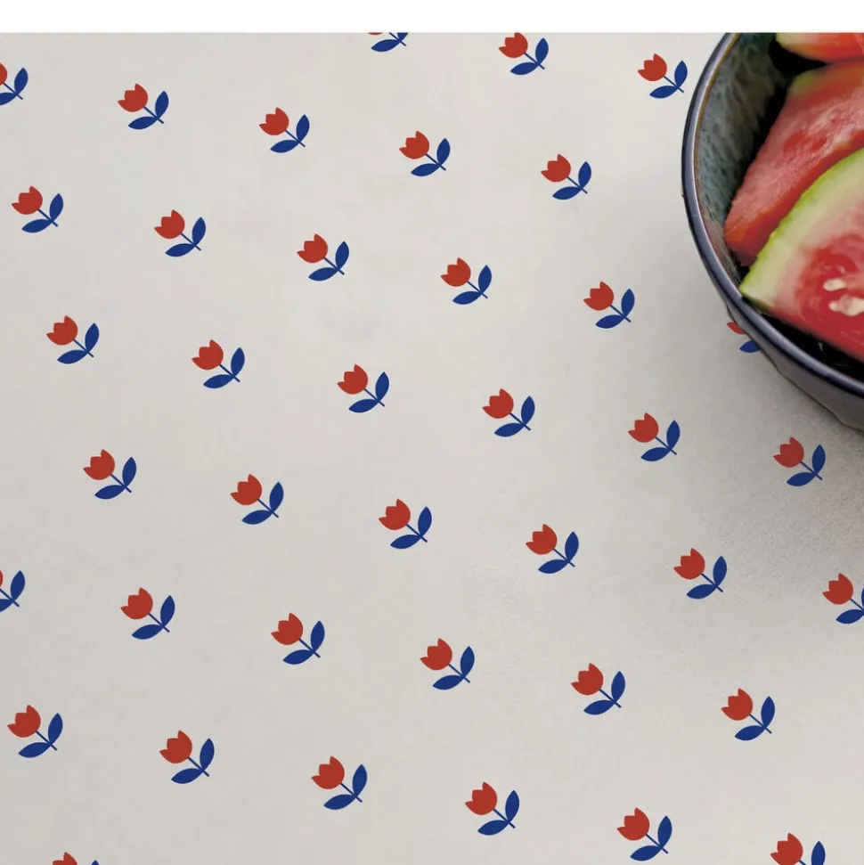 Med et charmerende print af små tulipaner i et tæt mønster tilføjer denne dug en herlig vintage-stemning og forfriskende coolness til din spisestue.
