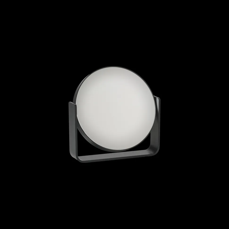 Uundværligt bordspejl, der pynter, hvor end du placerer det. Den ene side er almindeligt spejl, mens den anden forstørrer hele fem gange. Spejlet roterer sikkert om egen akse, da det bæres af en bred aluminiumsramme, som samtidig udgør spejlets stabile base. Det er pulverlakeret og har et fint mat look. Spejlet glider smukt ind i den populære UME-serie og fås i alle 7 farver: Black, White, Soft Grey, Grey, Eucalyptus, Taupe, Olive Green.