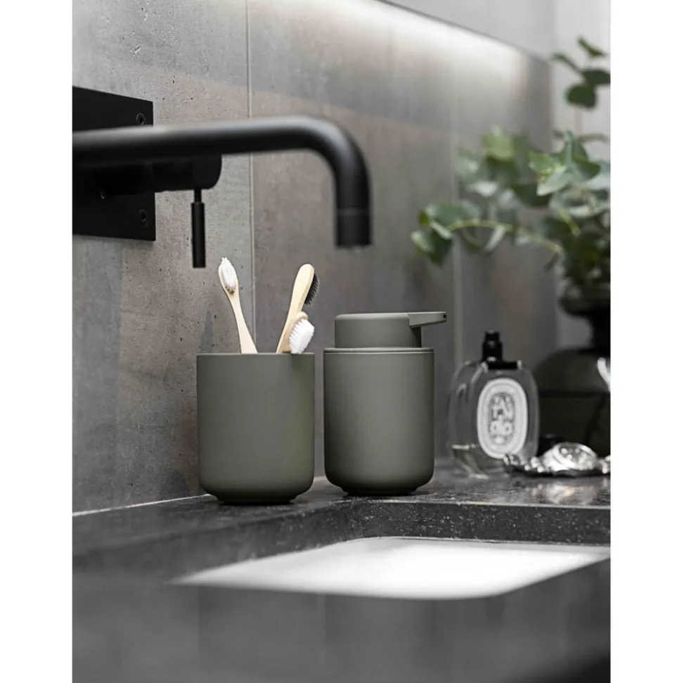 Sæbedispenseren har eksempelvis en lang tud for optimal pumpefunktion, ligesom toiletbørsten er udstyret med en praktisk inderkop, så overskydende vand let kan tømmes af – og så har børsten en god arbejdslængde og glider let på plads i holderen.