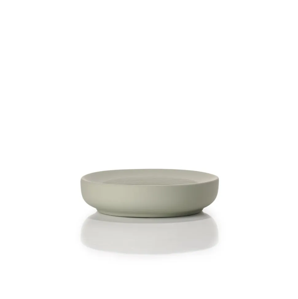 Den flotte Ume sæbeskål har en lækker soft touch-overflade og praktiske riller, der leder overskydende vand væk. Farverne matcher de øvrige elementer i Ume badserien, som designertrioen VE2 står bag. Dia. 12 cm, højde 3 cm.